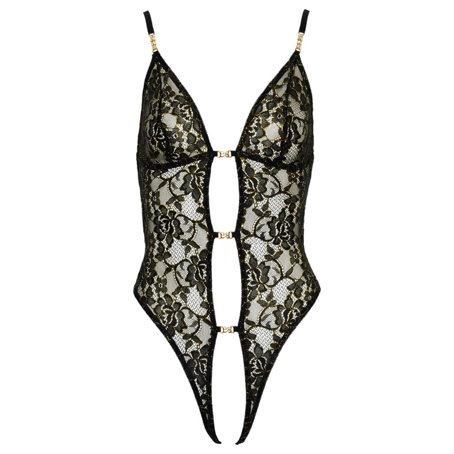 Åpen body med gullforgylt glitrende dekor - Abierta Fina åpen, blondestrødd body er den perfekte kombinasjonen av eleganse og erotikk!