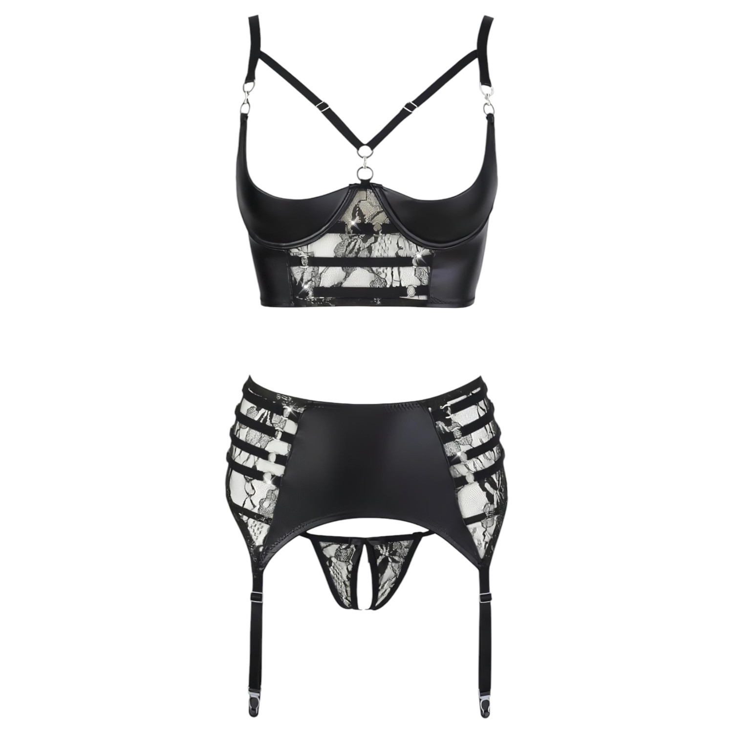 Bruk den bysterende BHen med den åpne trusen og blondeholdere, og kombiner med elegante strømper. Ideelt valg for romantiske kvelder eller spesielle anledninger når du ønsker å vise frem din femininhet i den mest sexy formen.