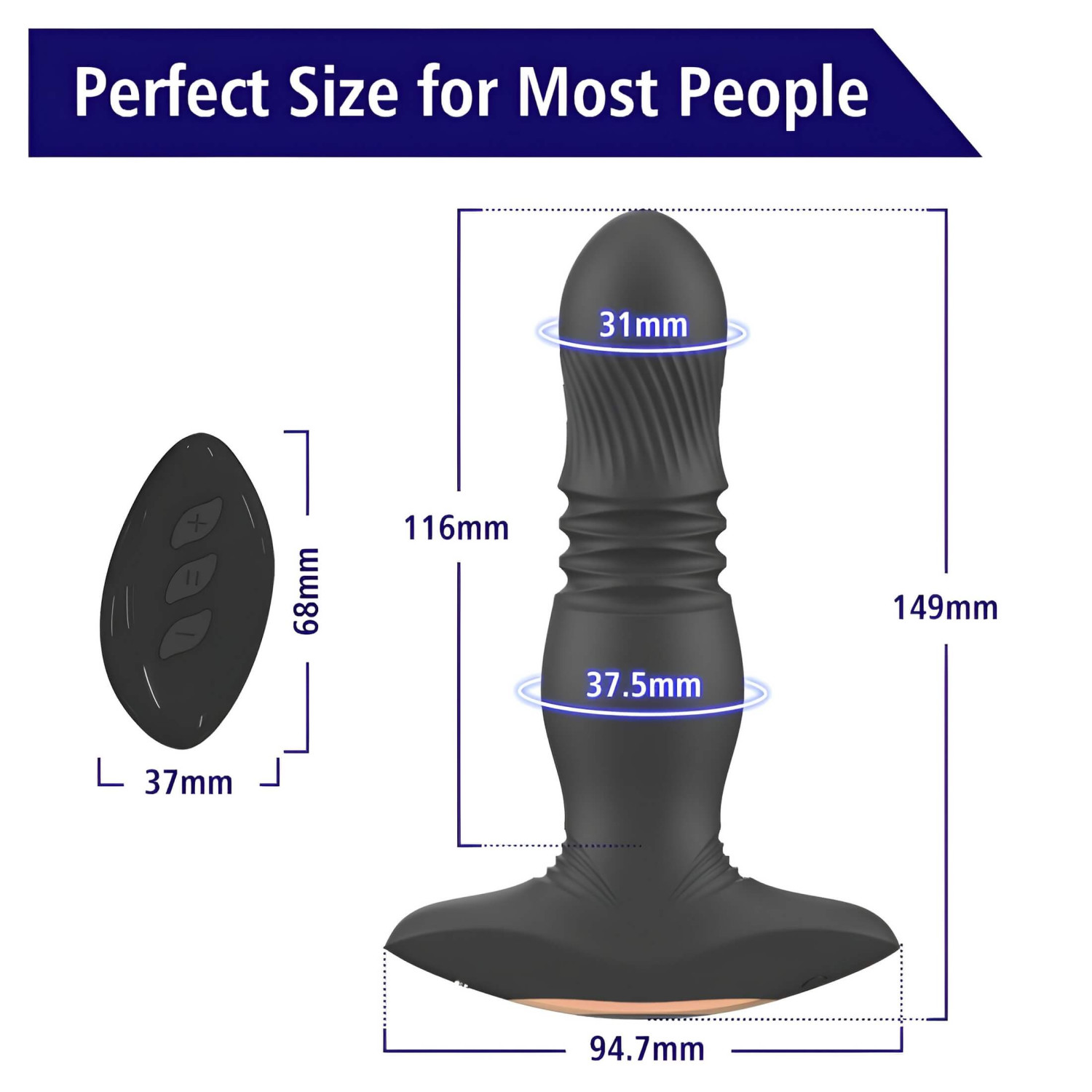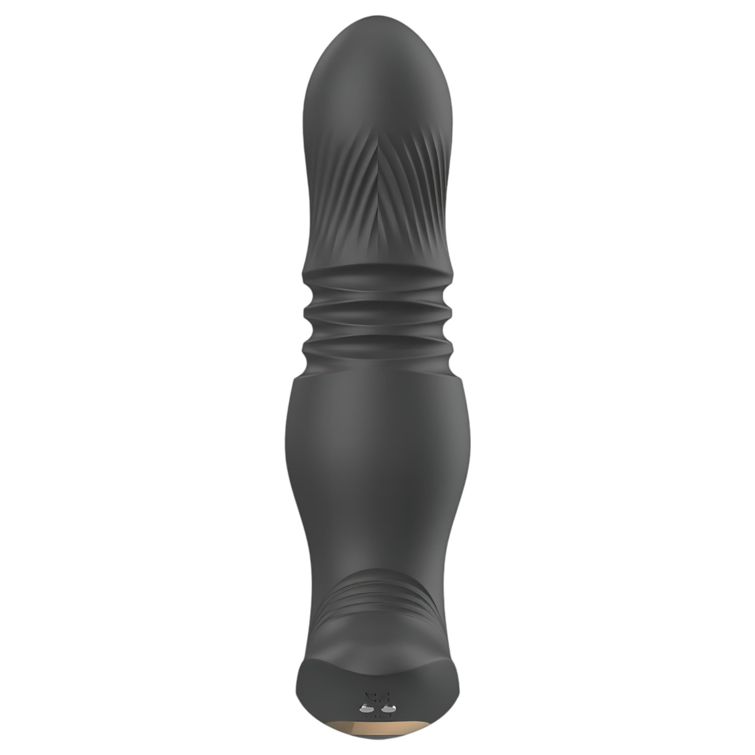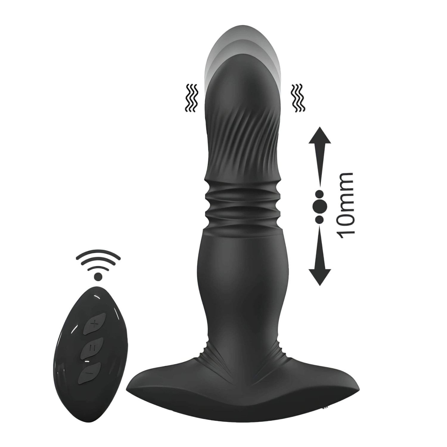 Vibrator med støt- og vibrasjonsfunksjon som kan styres med fjernkontroll, slik at du enkelt kan kontrollere den etter innsetting, eller la partneren din styre nytelsen.