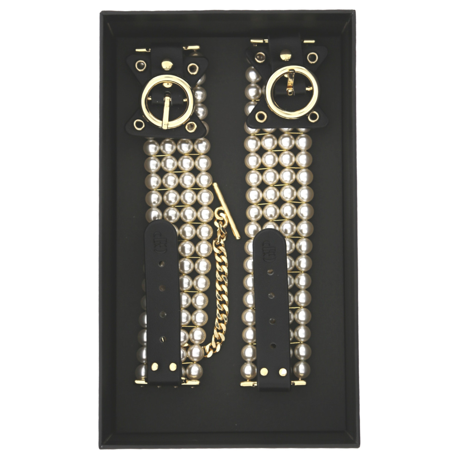 Allure ankelmansjett med perler tilbyr en spesiell opplevelse med sitt elegante utseende og raffinerte design. Flerradede perlepynt og detaljer i gulltoner gir en luksuriøs effekt, mens myke veganske lærremmer gir behagelig og sikker bruk. Den avtakbare gullfargede kjeden som følger med mansjetten, gjør det mulig med leken, lett fiksering, så den kan bæres både som et elegant moteaccessoire og som et erotisk bondageverktøy.