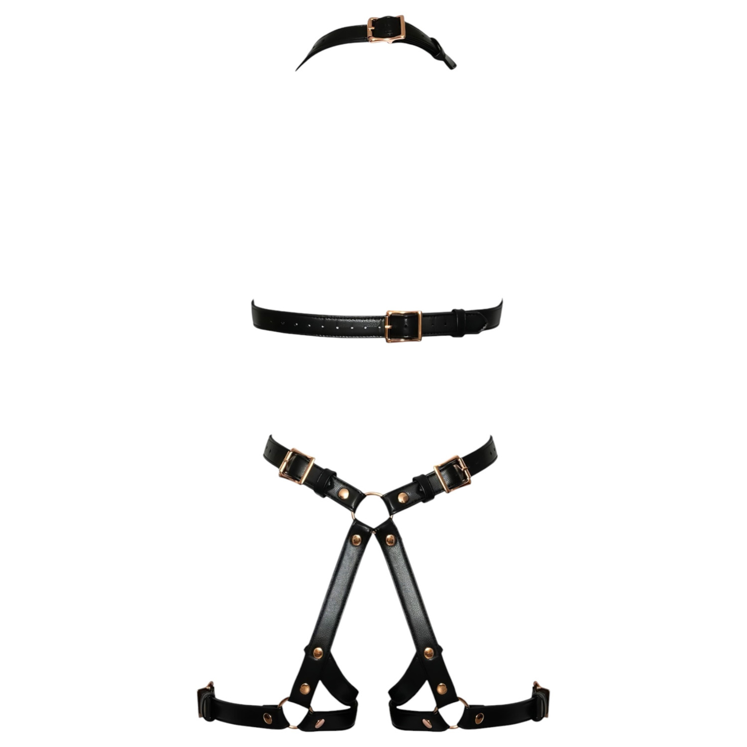 • 1 stk svart kroppsharness med rosegullfargede spenner