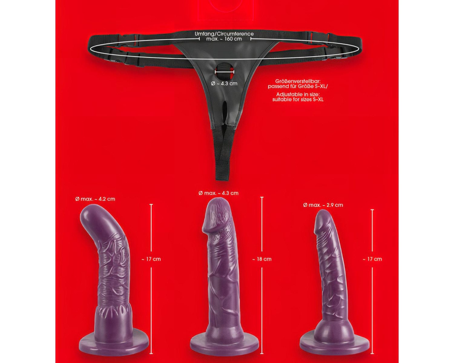 • Tre forskjellige typer dildoer (normal, anal, G-punkt) for varierte opplevelser.