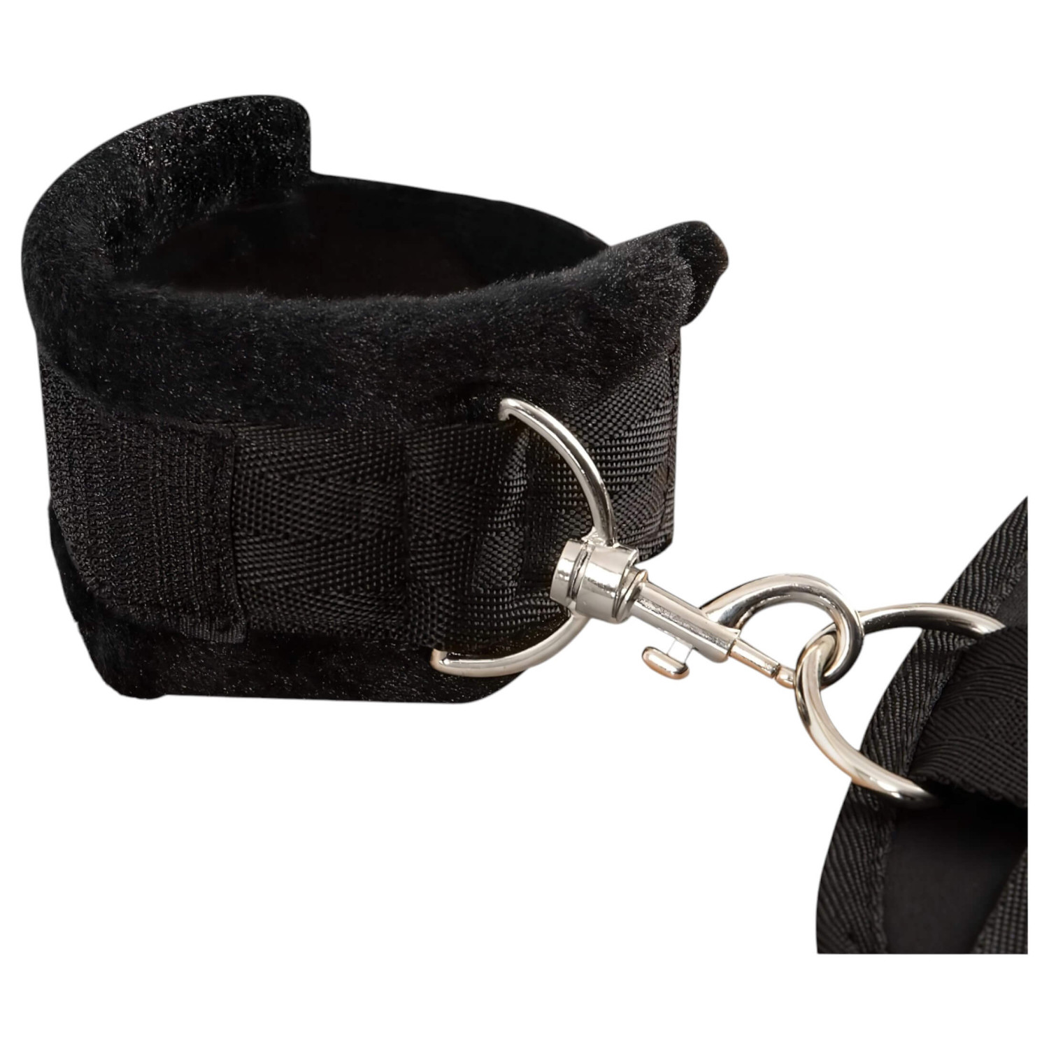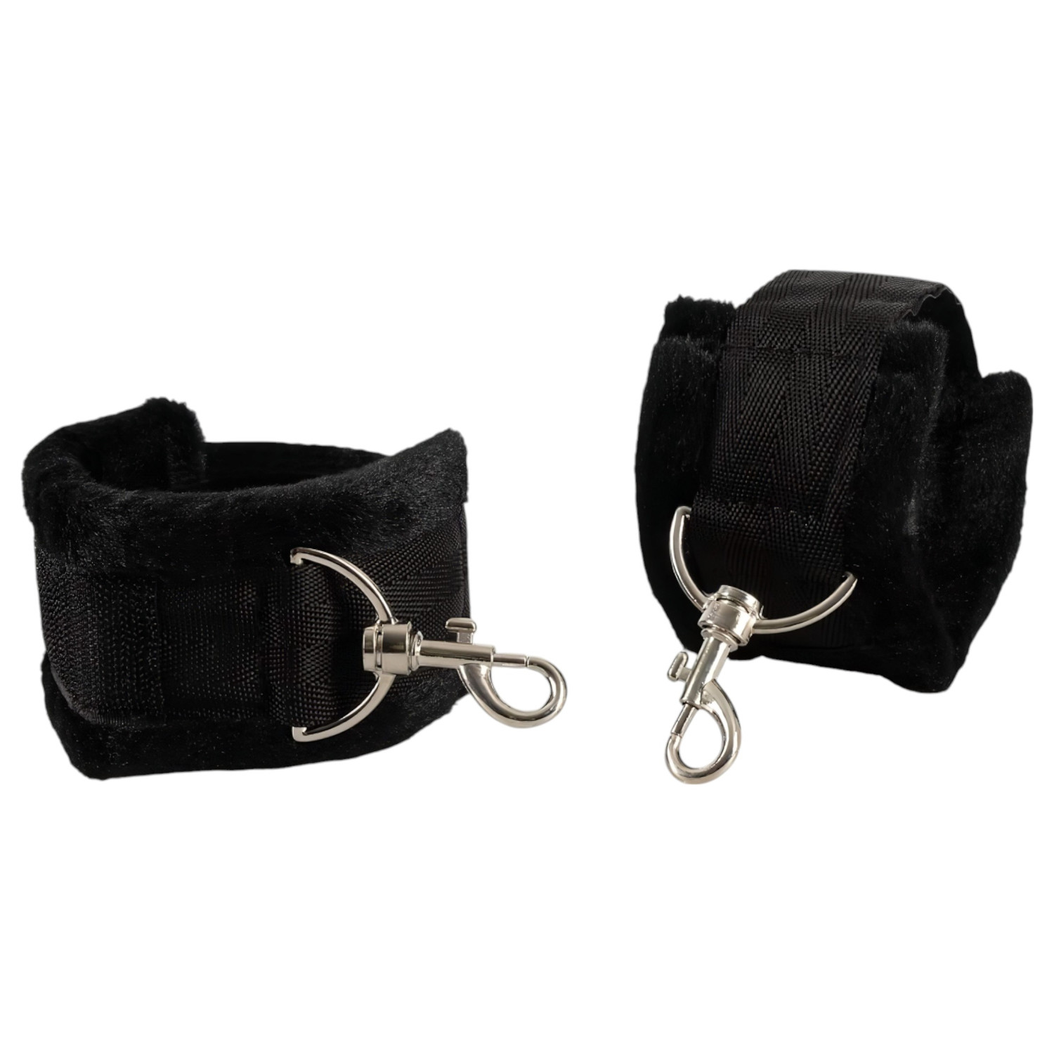 • Håndfester - (med metallkarabiner) avtakbare borrelåsbelagte håndjern for å feste partnerens hender