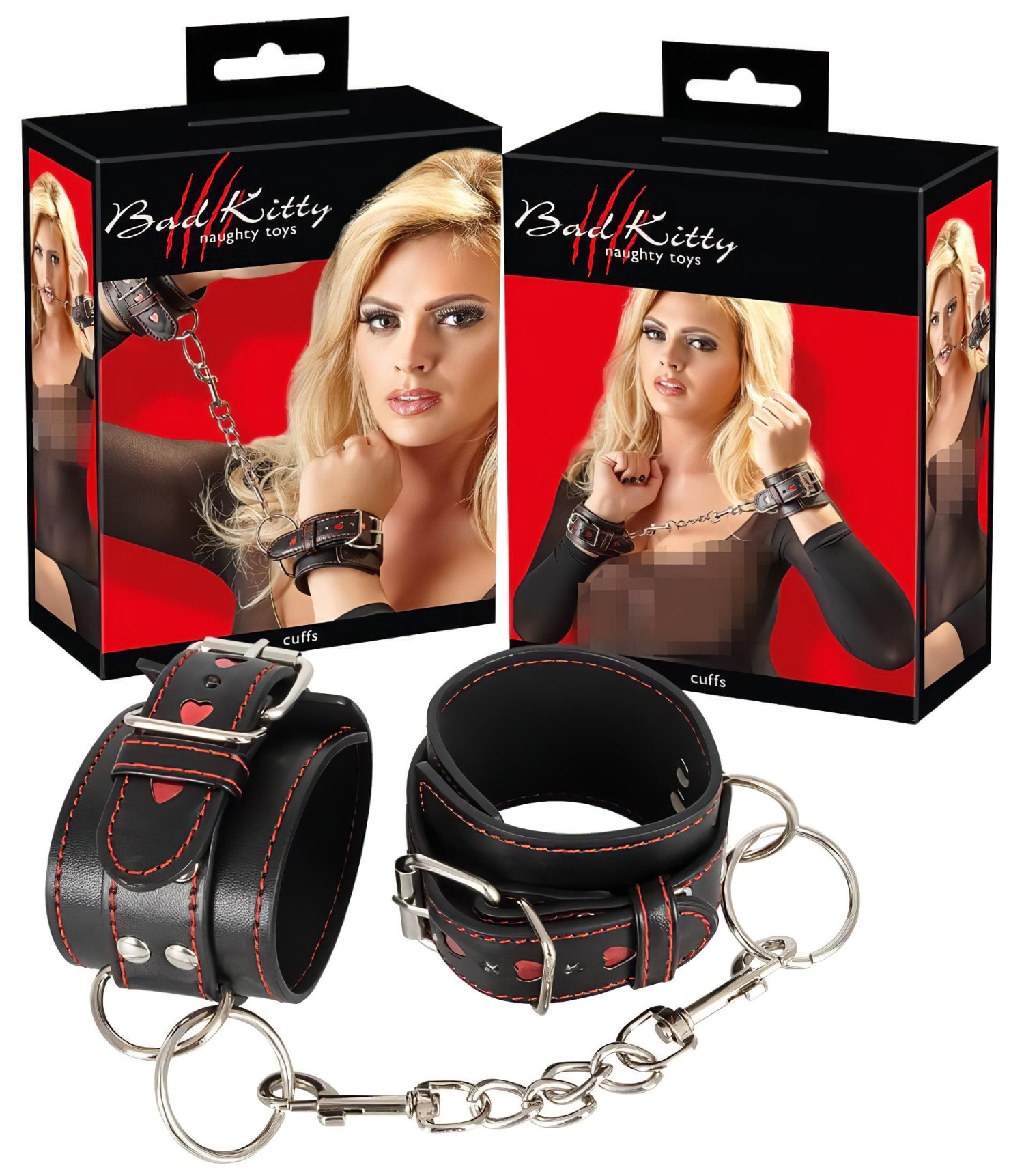Bad Kitty - hjerteformede håndjern (svart)