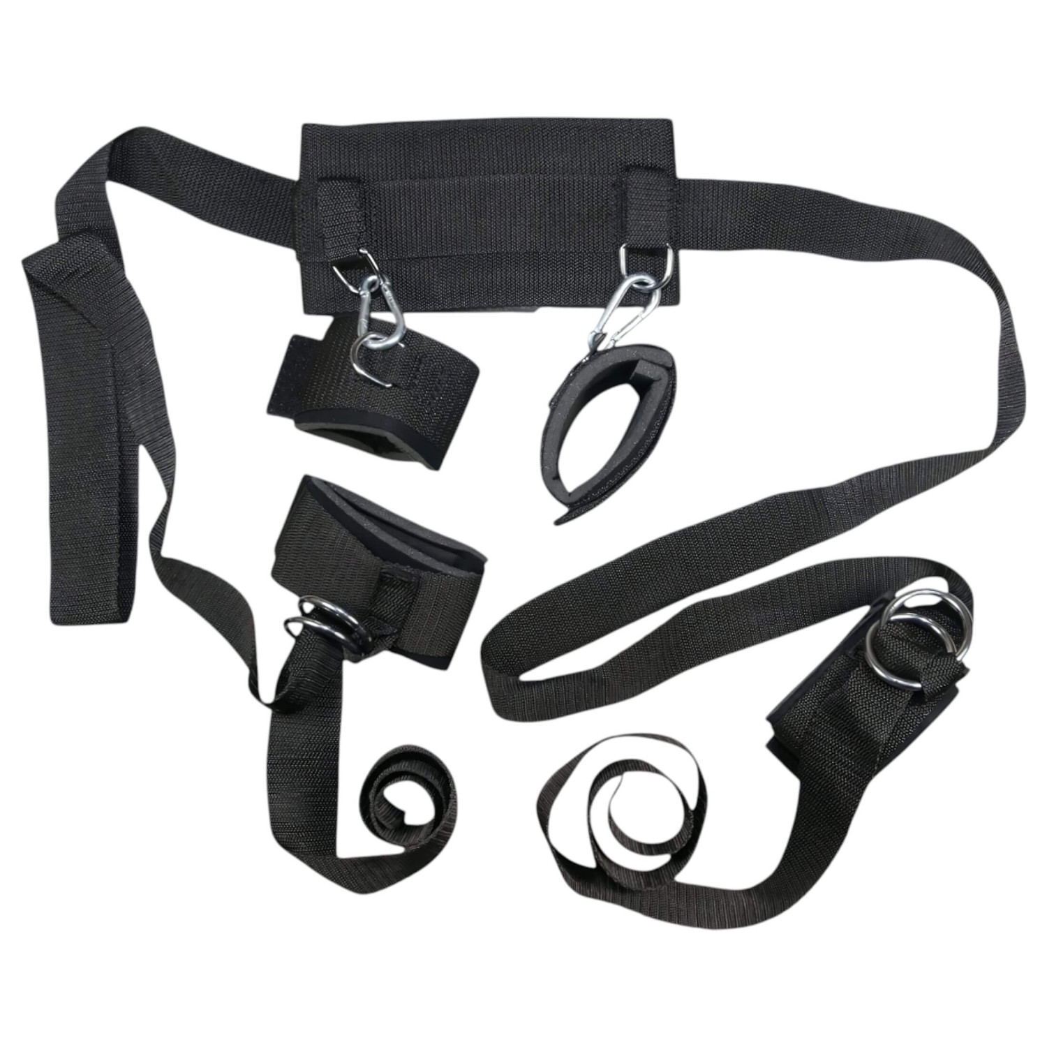 • 2 polstrede ankelmansjetter med borrelåsjustering, metallkarabiner.