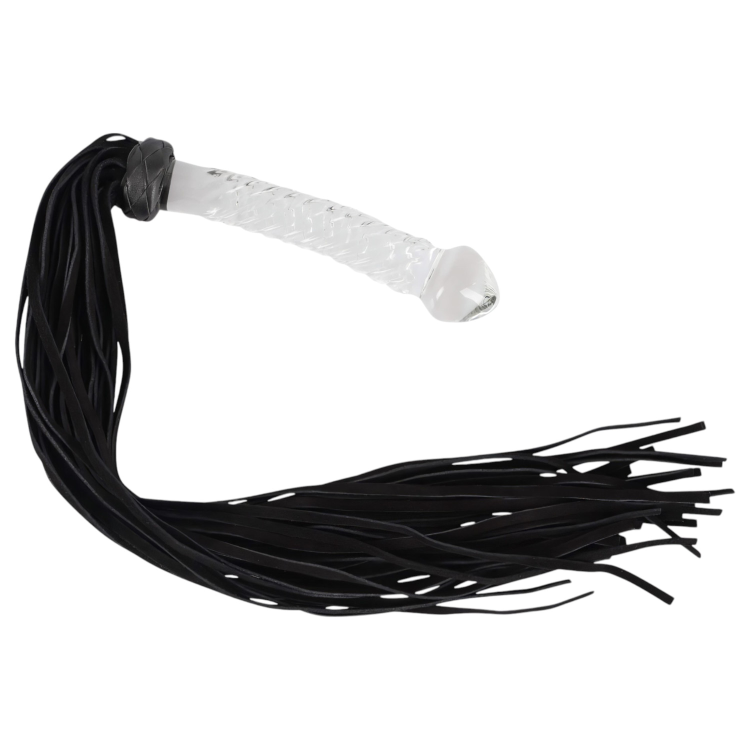 Bad Kitty - Lærpisk med glassdildo (gjennomsiktig-svart)