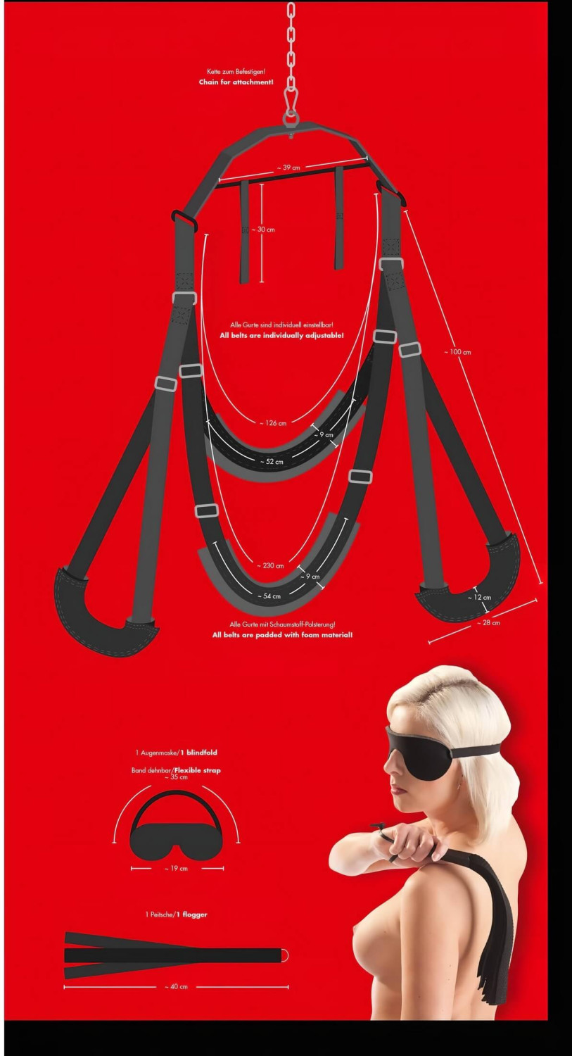 • Tilbehør – øyemaske og flaps – for en enda mer intens opplevelse.