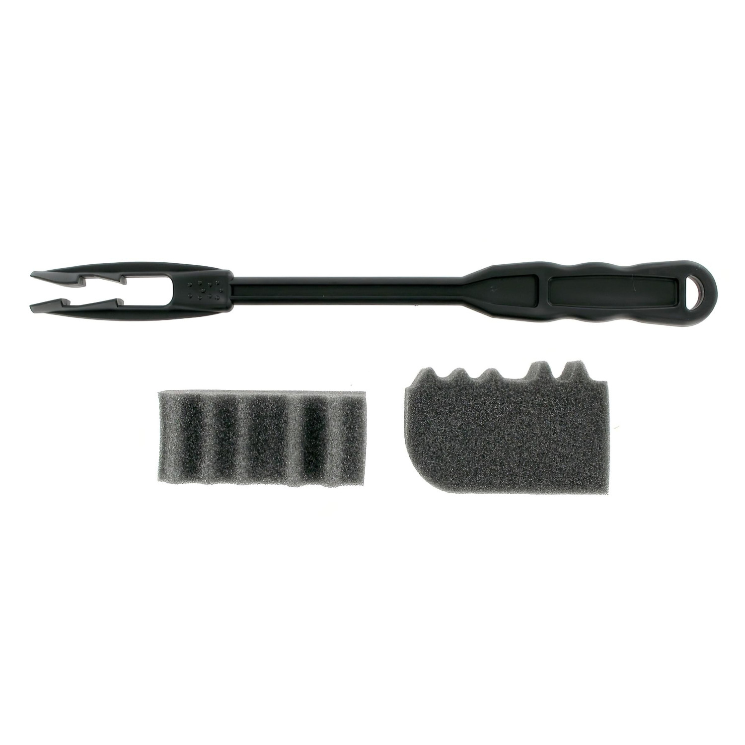• Spesialdesignet rensebørste som hjelper med å fjerne smuss og oppsamlede materialer etter bruk.