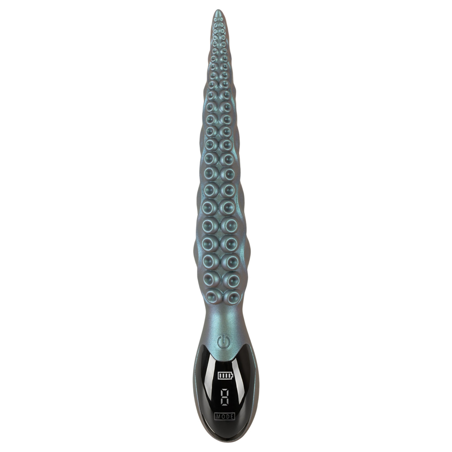Beasty Cocks Octo Vibes-vibratoren kommer med et unikt design inspirert av blekksprutarmene. Den er ikke bare visuelt imponerende, men gir også intens stimulering. Den metalliske, grønne nyansen og teksturen som minner om sugekopper forsterker alle bevegelser. Vibrasjonene strekker seg helt til toppen, der den myke, dynamiske hetten nesten kommer til liv. Denne vibratoren er ikke bare et verktøy - det er en opplevelse som kaster deg inn i en dyp, pulserende glede, enten det er vaginal eller anal bruk.