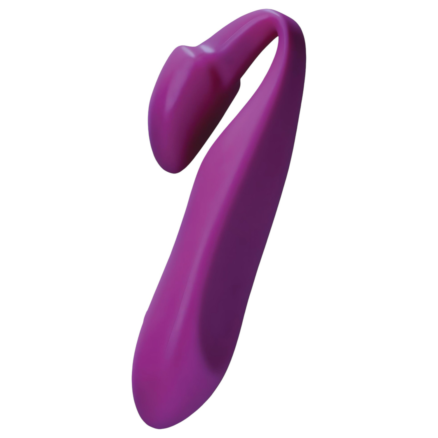• Den smale designen gjør det enkelt for penis og vibratoren å trenge inn i vagina samtidig. Den lille stimulerende armen kan dere også leke med, la den peke opp eller ned.