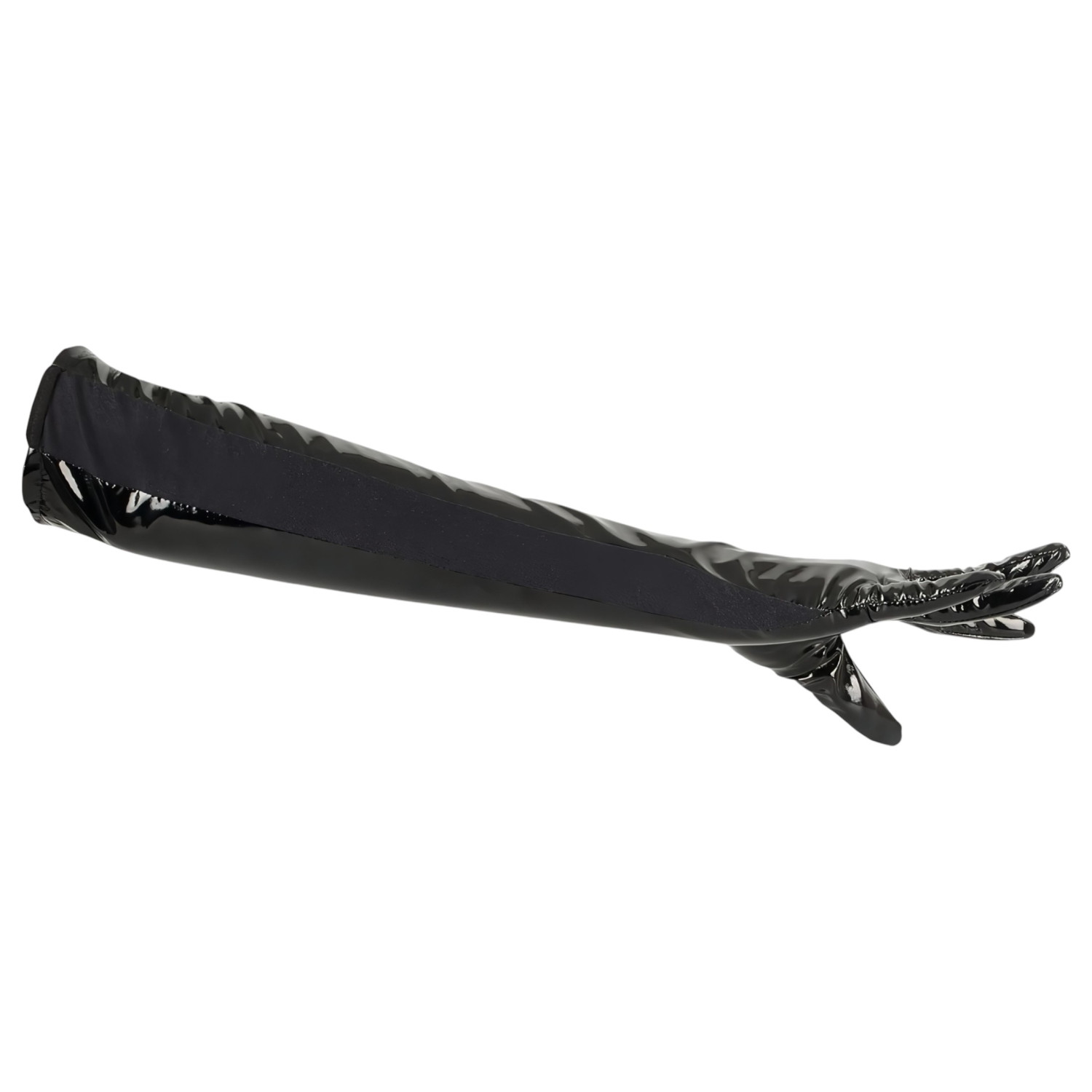 Skinnende hansker laget av lakk, perfekte som tilbehør til ville fester eller som en del av et dominakostyme!