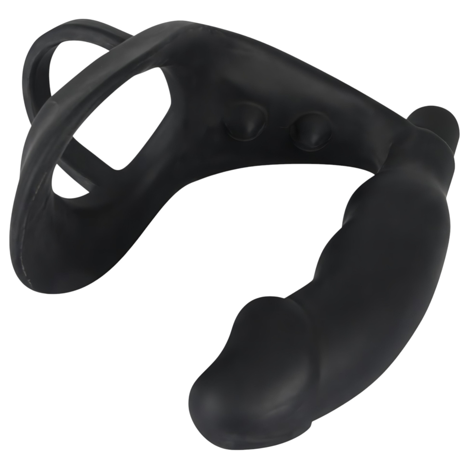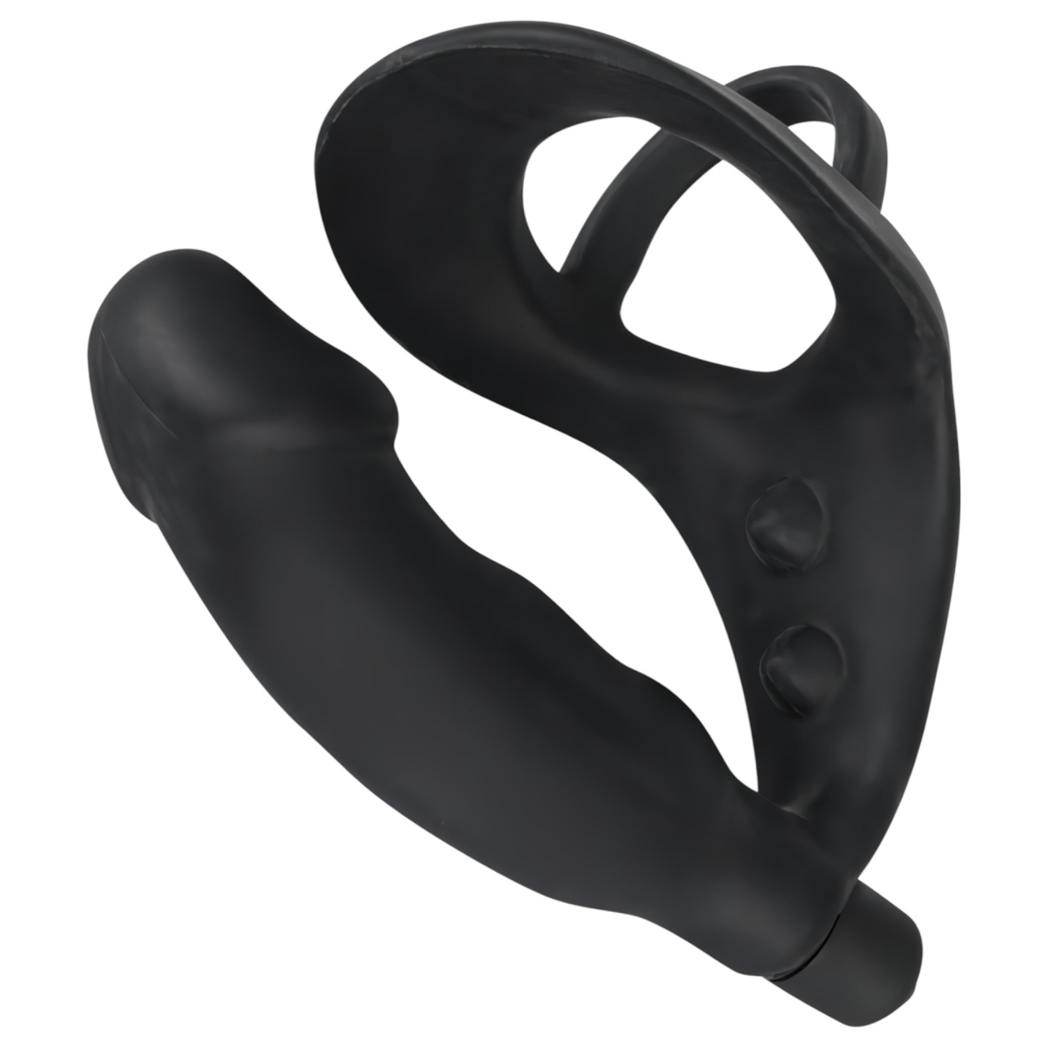 Black Velvet penisanalvibratoren tilbyr en unik dobbel opplevelse! Penis- og testikkelringen sørger for langvarig, kraftig ereksjon, mens den penisformede analvibratoren gir dypgående stimulering.
