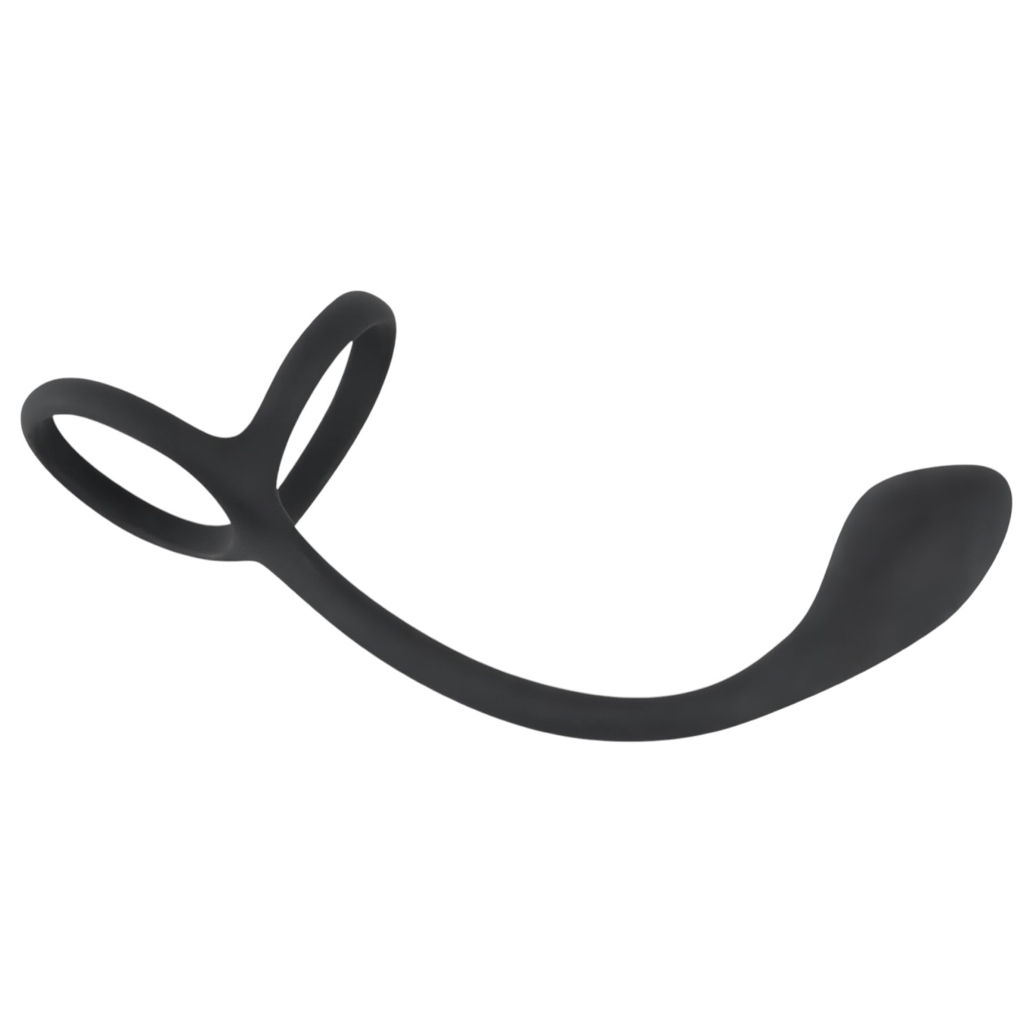 Black Velvet: Tynn anal dildo med penis- og testikkelring (svart)