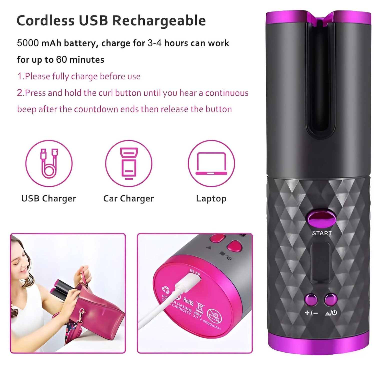 Praktisk trådløs krølltang som enkelt gjør rett hår bølgete eller til og med helt krøllete.