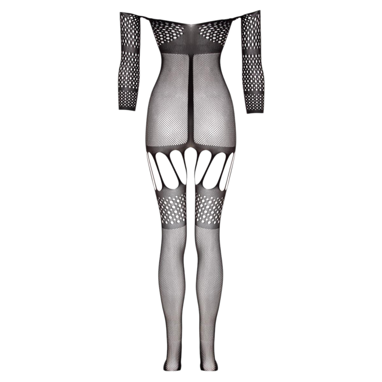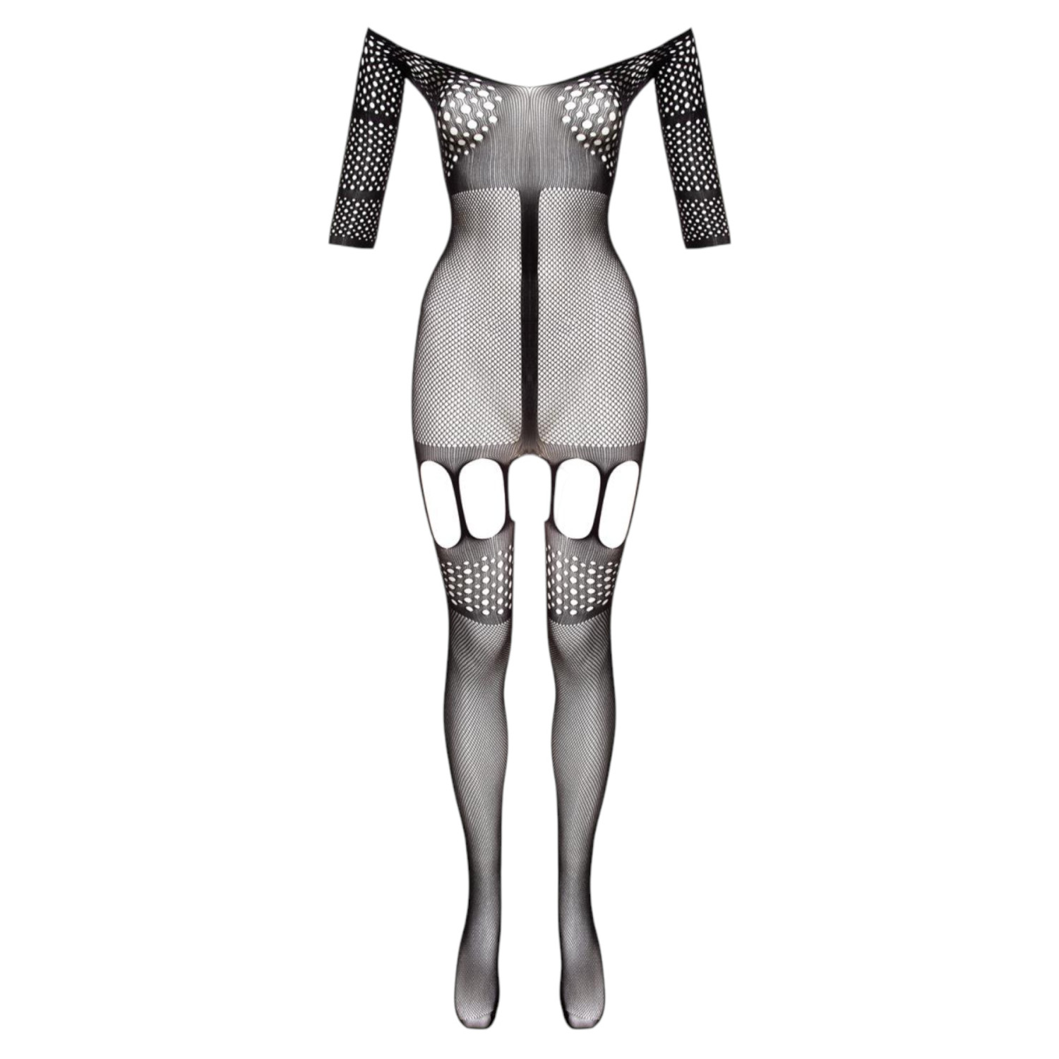 • 1 stk svart Rosa langermet bodystocking med åpen skrittparti og strømpeholderdesign