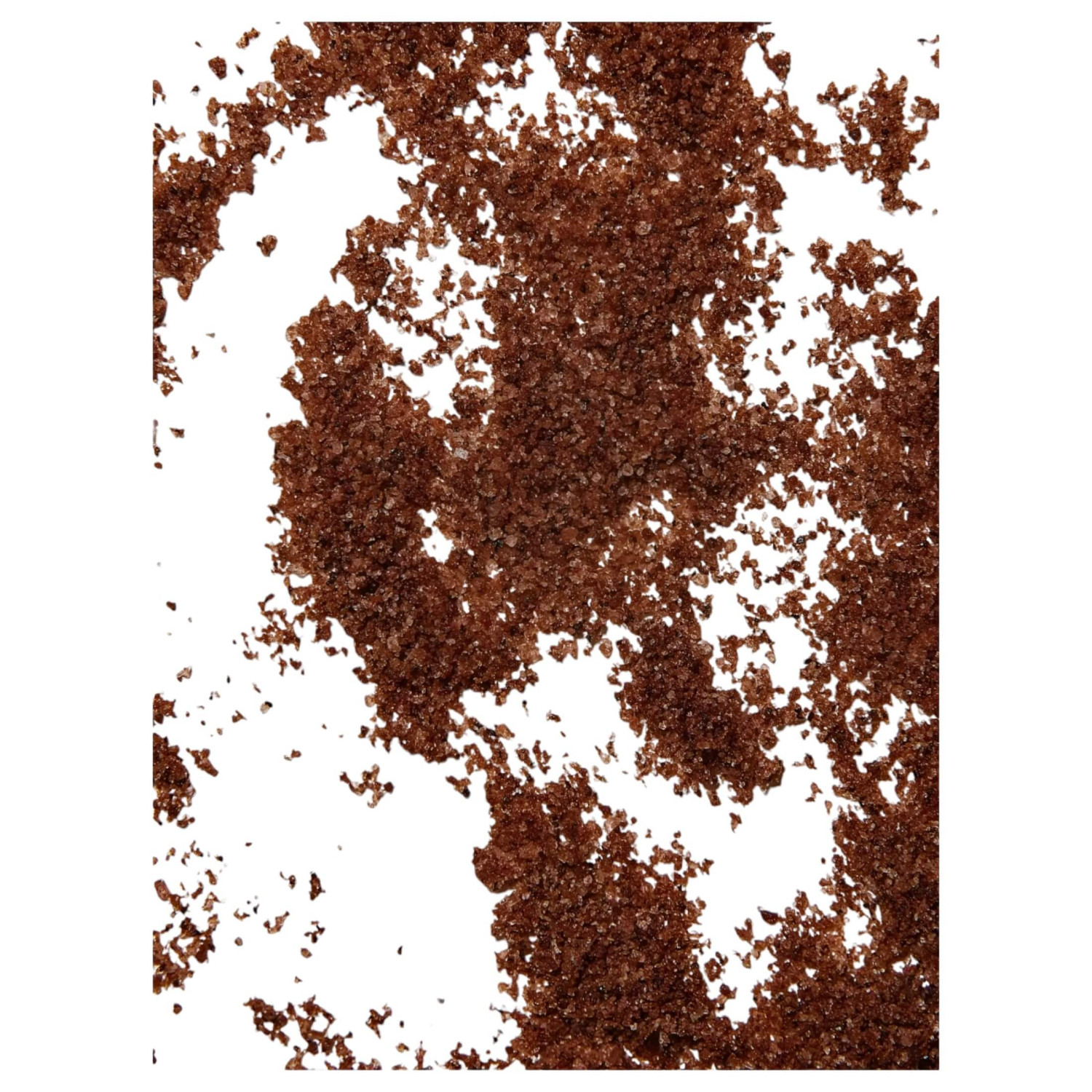 cocosa sukker, Himalayasalt, kaldpresset kokosolje, arganolje, arabica kaffeskrubb, rått kakaopulver, mandarin essensiell olje, naturlig E-vitamin