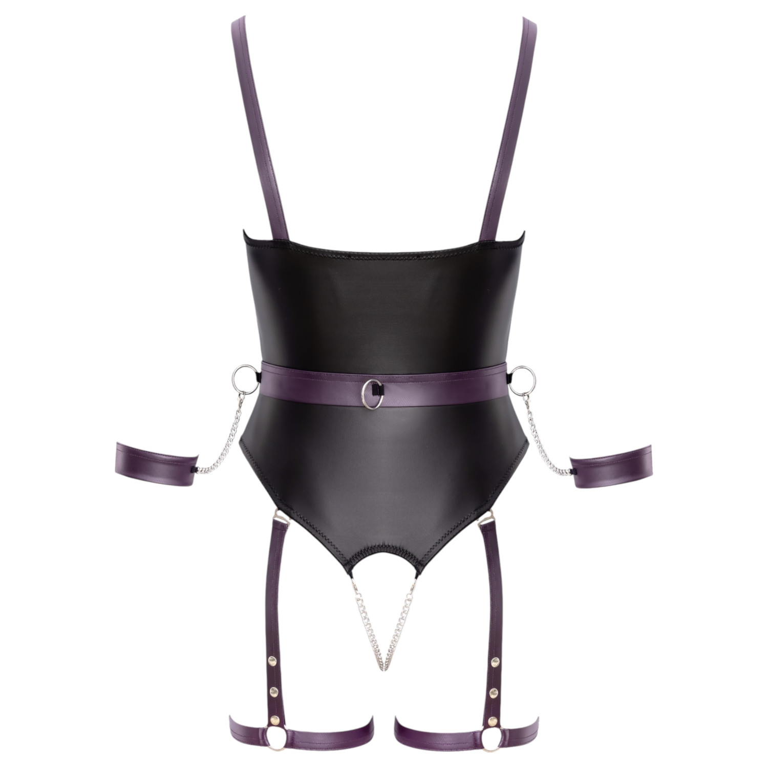 Denne raffinerte, men forførende fetisj bodyen er det perfekte valget hvis du ønsker å gå ut av din komfortsone og utforske bondage-verdenen - med stil. Det komfortable, myke og elastiske materialet smyger seg perfekt til kroppen, mens pirrende detaljer (kjeder, ringer, håndjern) stimulerer alle dine sanser. Takket være åpen design trenger du ikke å kle av deg for nytelsens skyld, og dermed er det perfekt for et spennende dominerende eller underdanig spill.