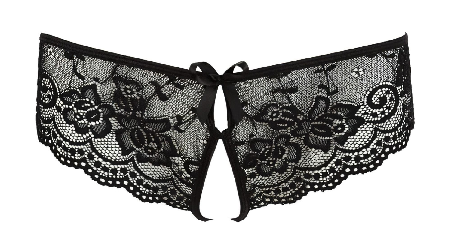 Cottelli - Åpne Sorte Blondetruser med Sløyfe