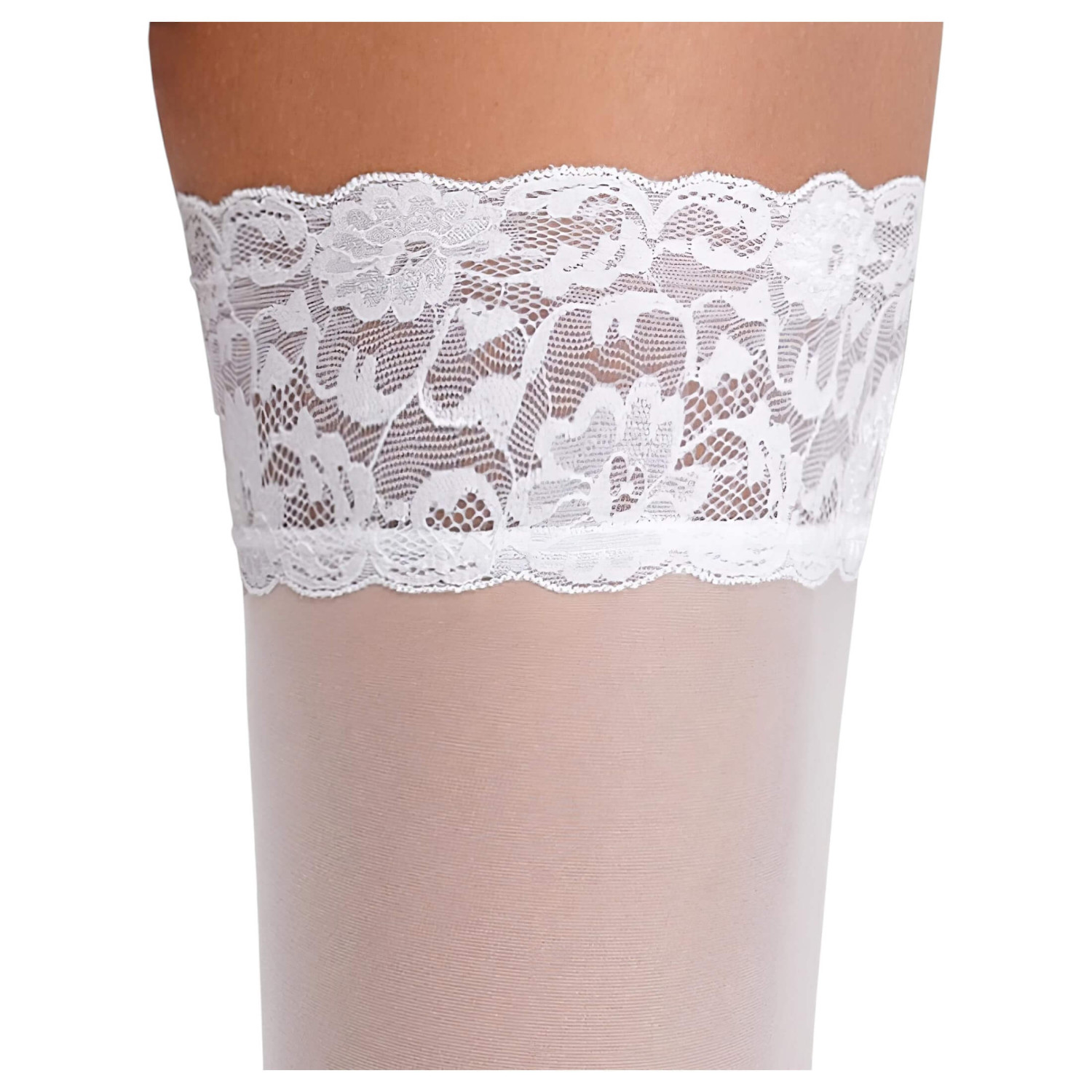 Cottelli - Blonder og blomstrete stay-ups (hvit) - 4/L