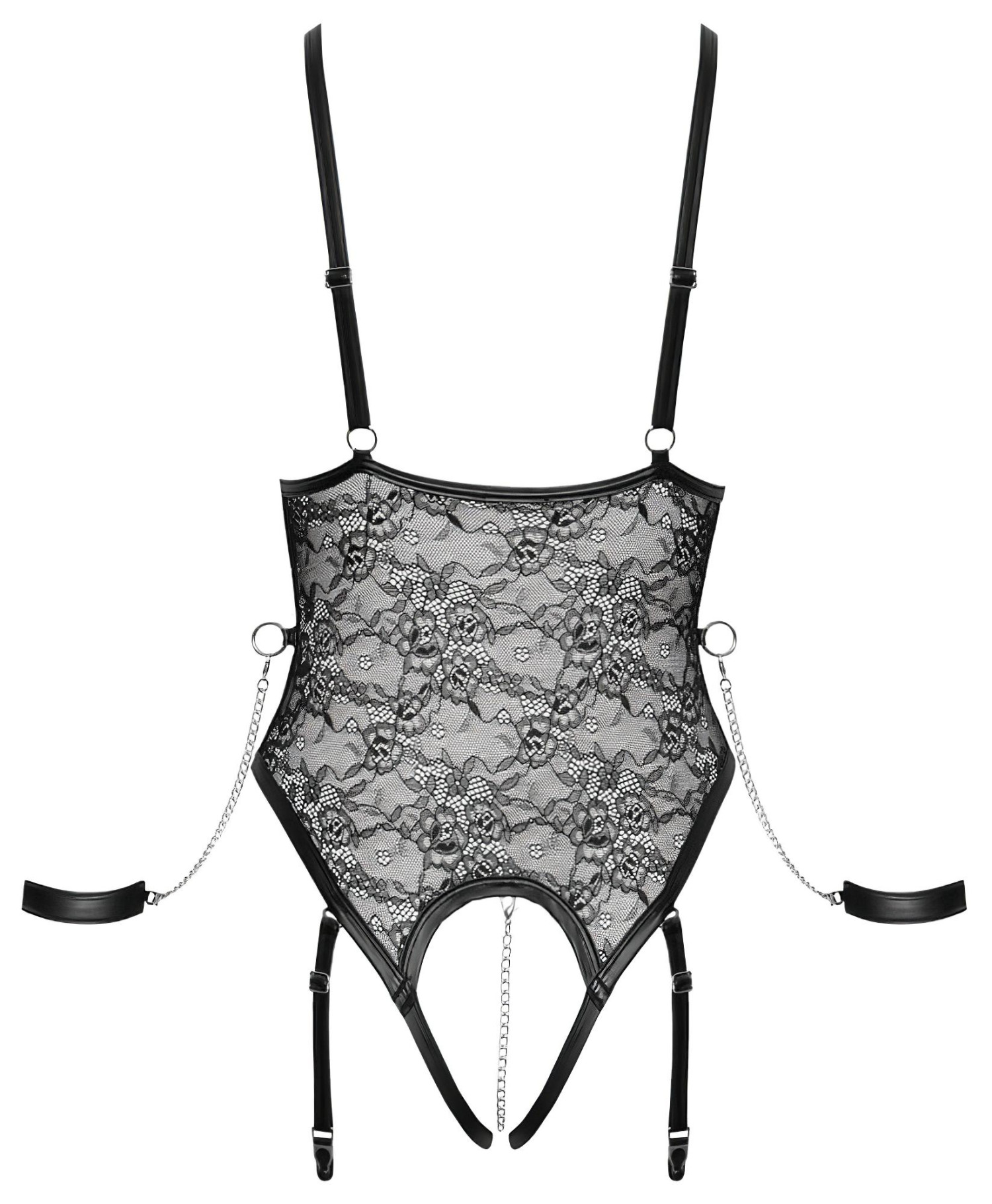Cottelli Bondage - Åpen body med håndjern (svart)