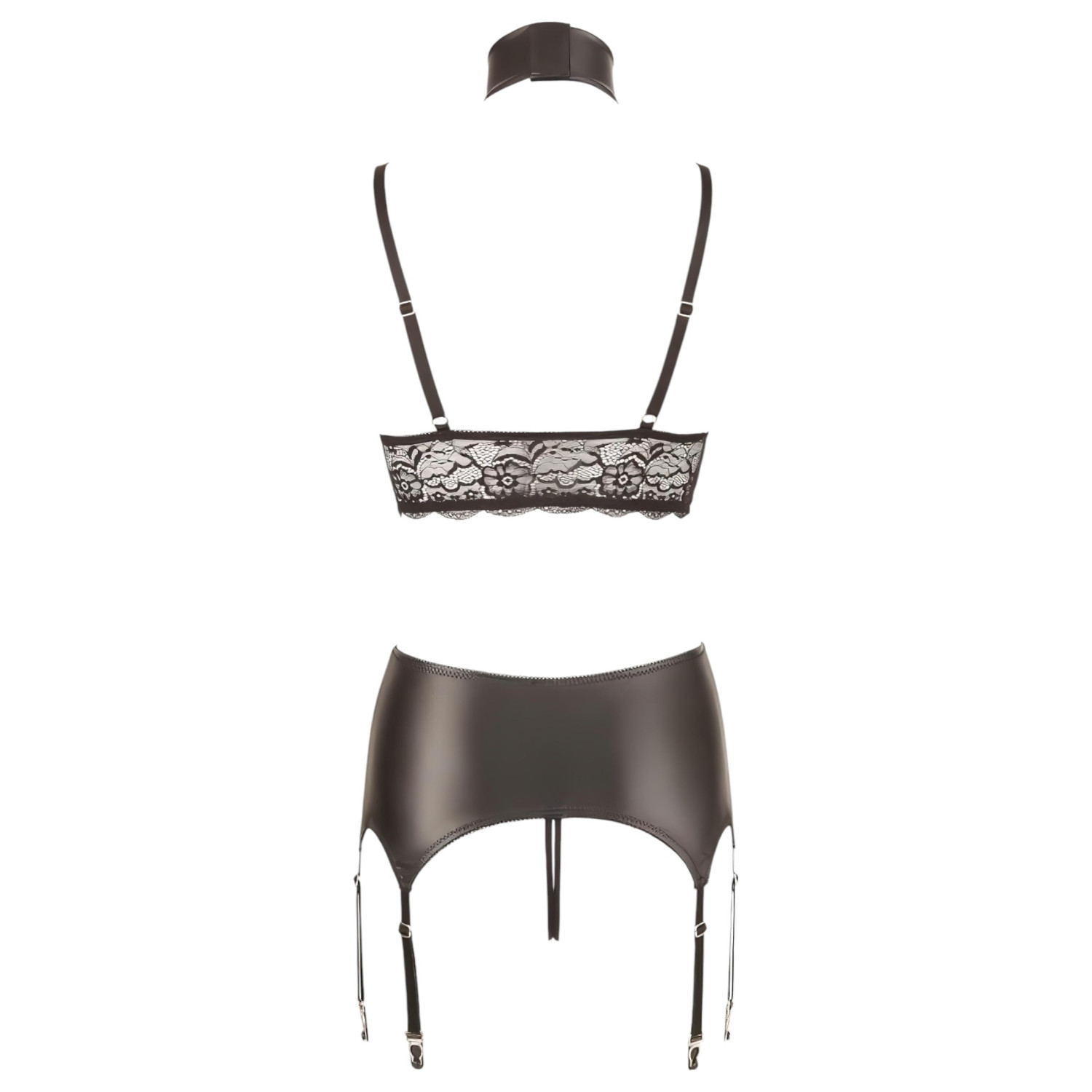 • Komplett sett: BH, truse med strømpeholdere, halsbånd og håndjern sørger for en fullstendig opplevelse.