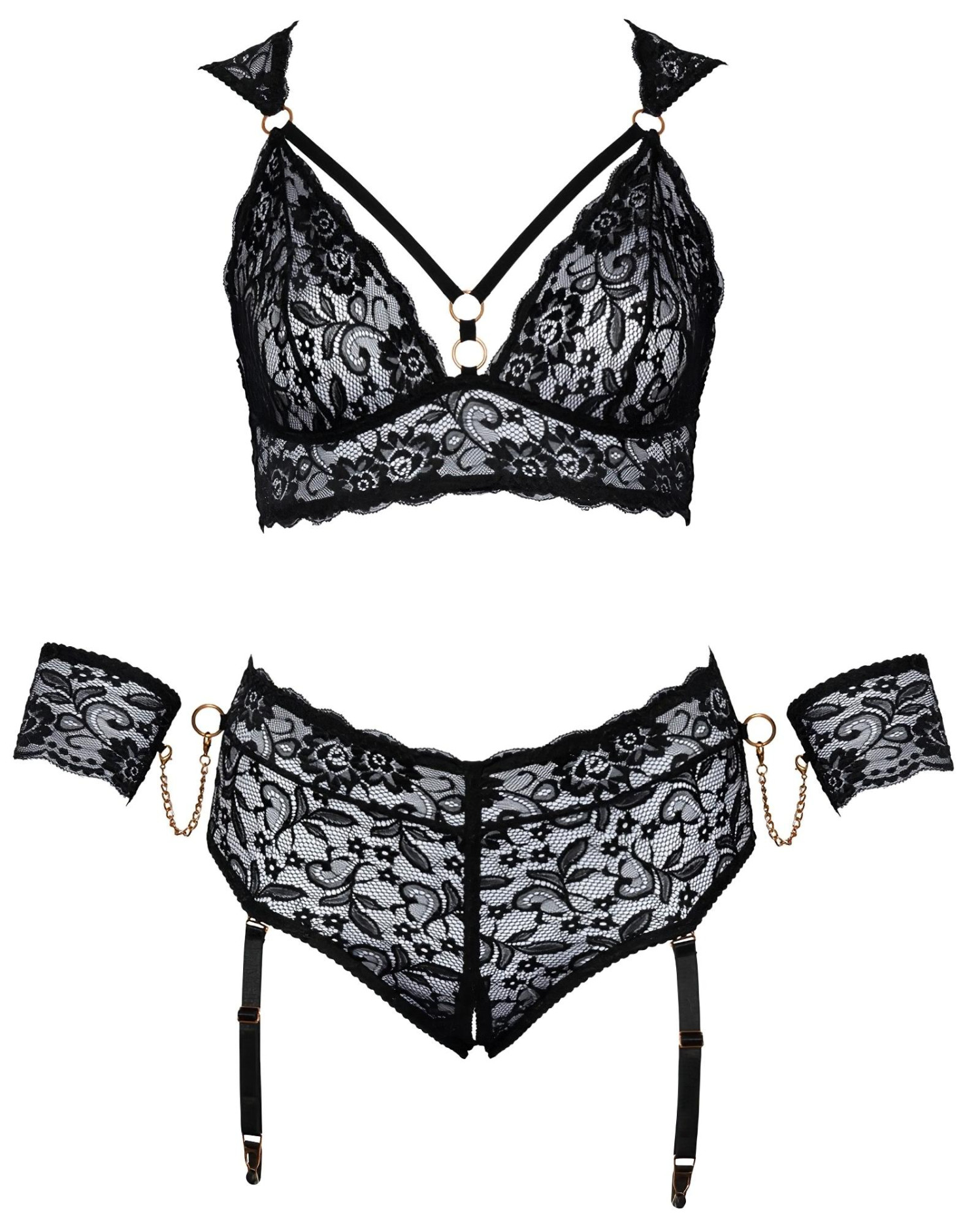 Cottelli Bondage Plus Size - sexy blonde BH-sett (svart)
