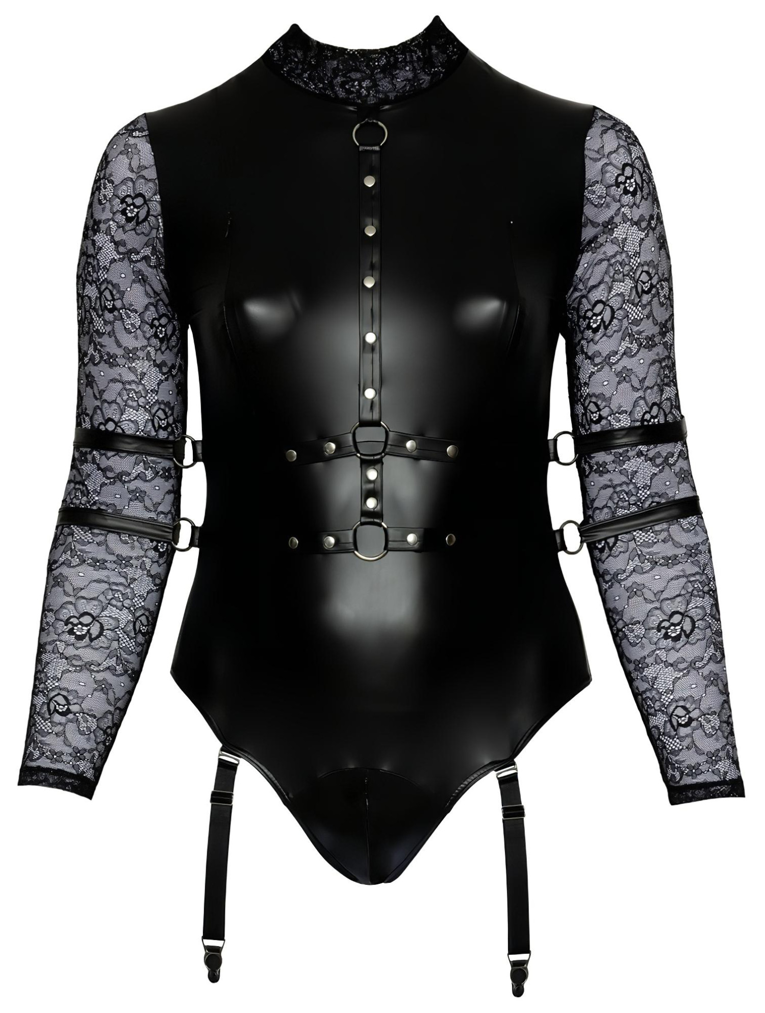 Cottelli Bondage Plus Size - Sort teddy med blondermer