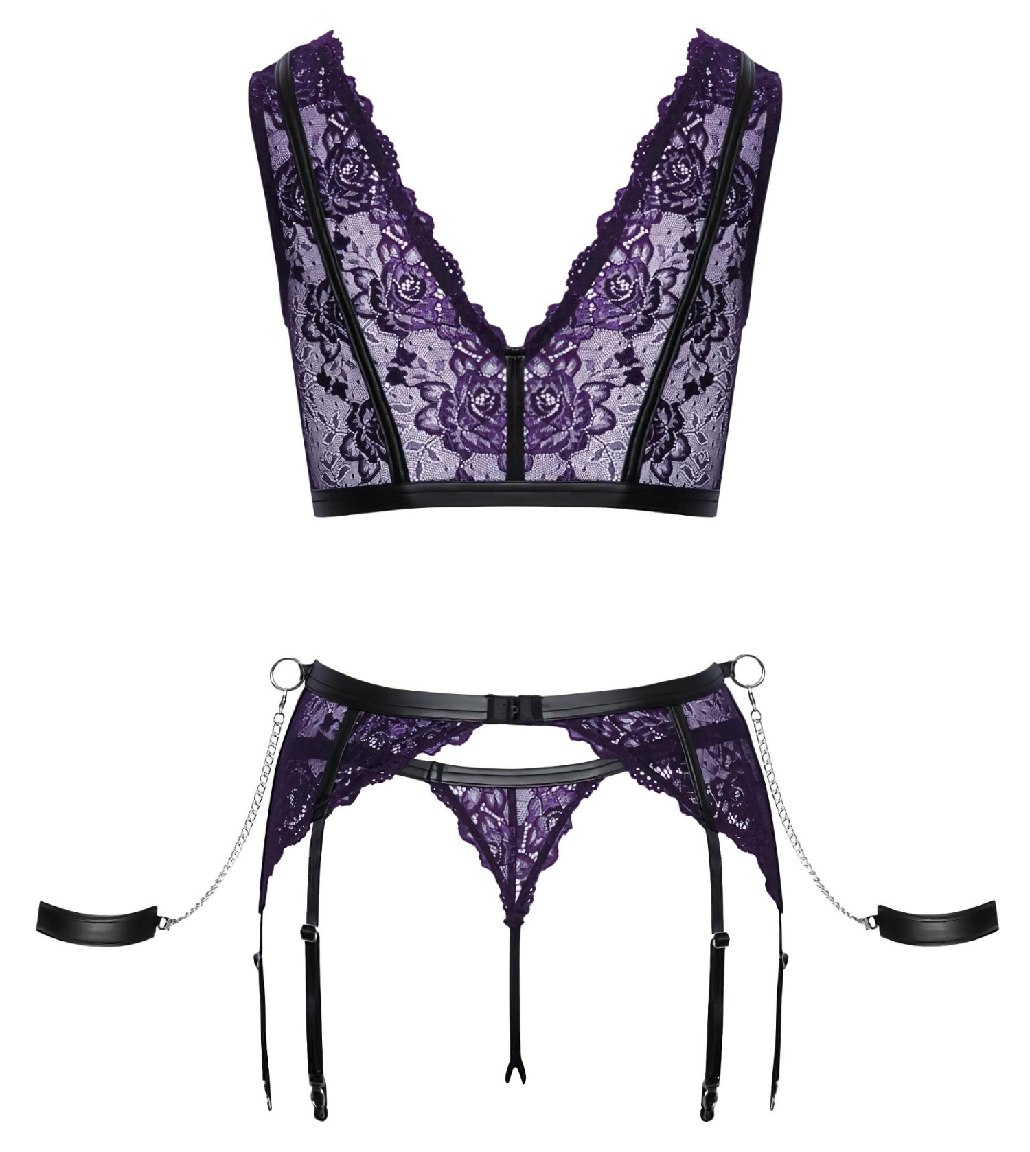 Cottelli Bondage - undertøysett og håndjern (svart-lilla) - L