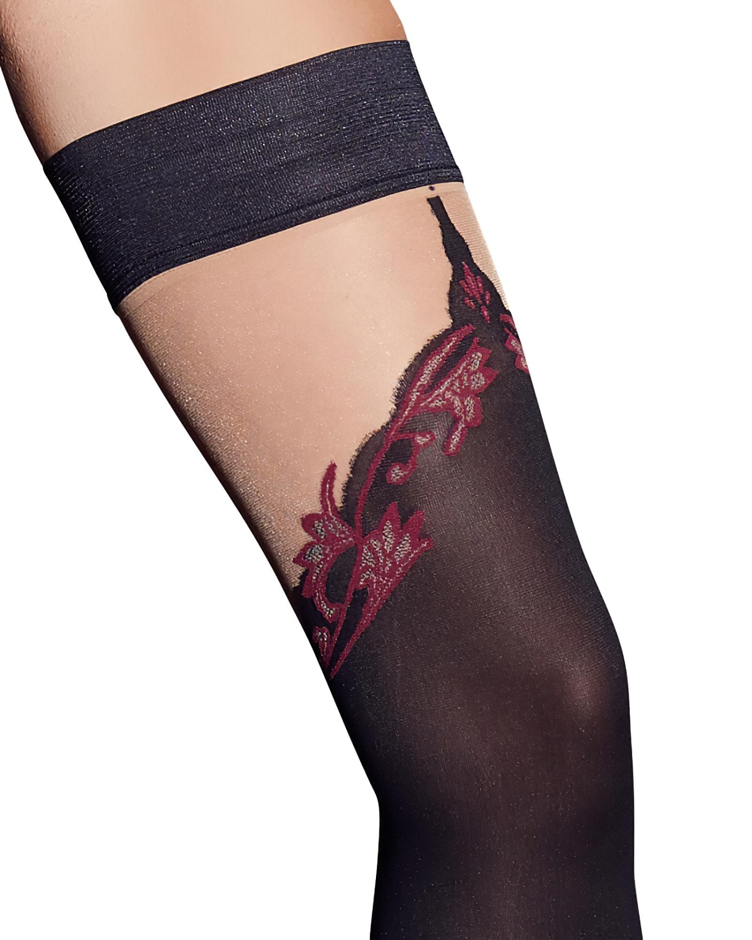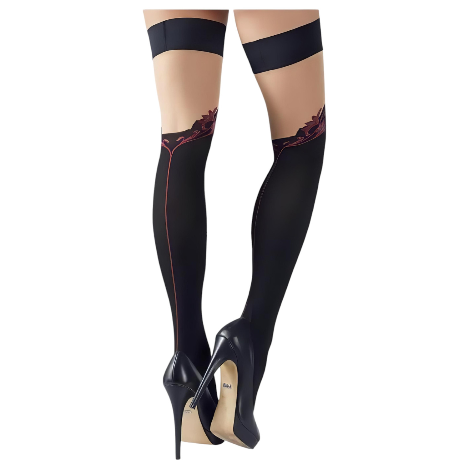 Cottelli Plus Size - Strømpe med bred blondekant (Svart)