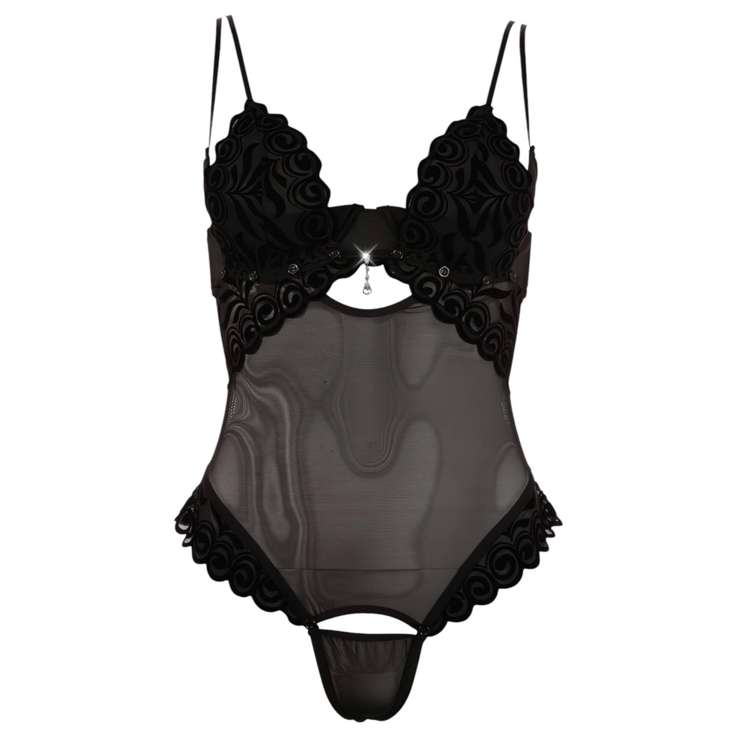 • Elegant design: Den lette, gjennomskinnelige, elastiske stoffet og de fine, fløyelsbroderiene fremhever kvinneligheten perfekt.