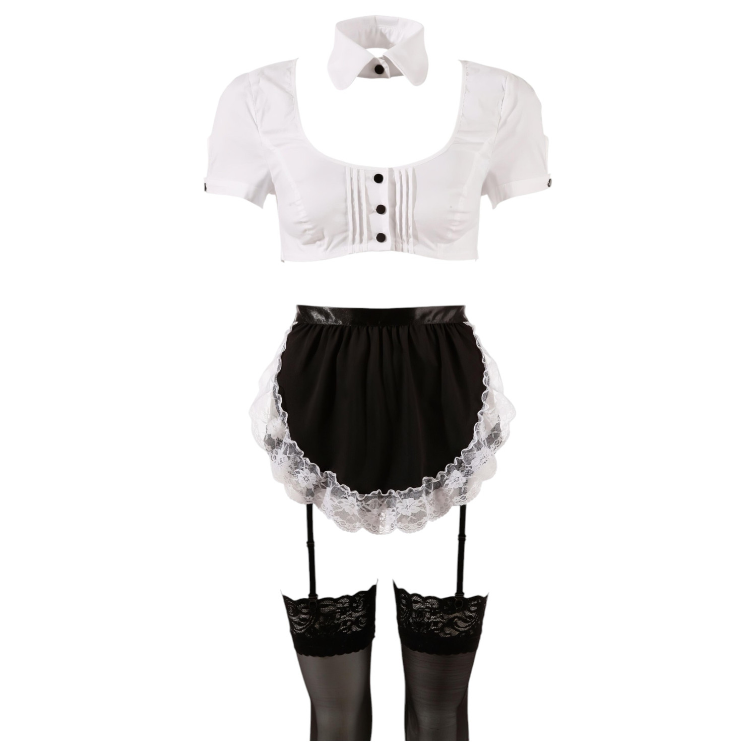 Fortryll alle med dette forførende, seksdelte stuepike-kostymet som kombinerer klassisk eleganse med moderne sensualitet!