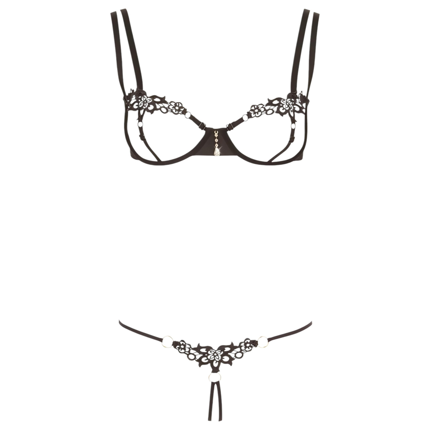 Cottelli - Glitrende Brodert Bh-sett (Svart) - M
