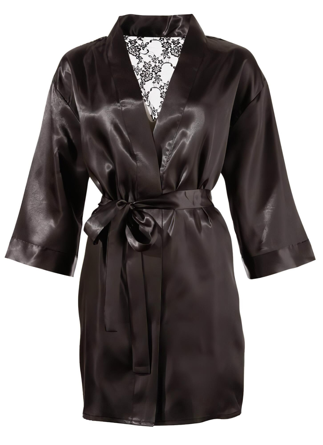 Cottelli - sateng og blonder kort kåpe (svart) - L/XL