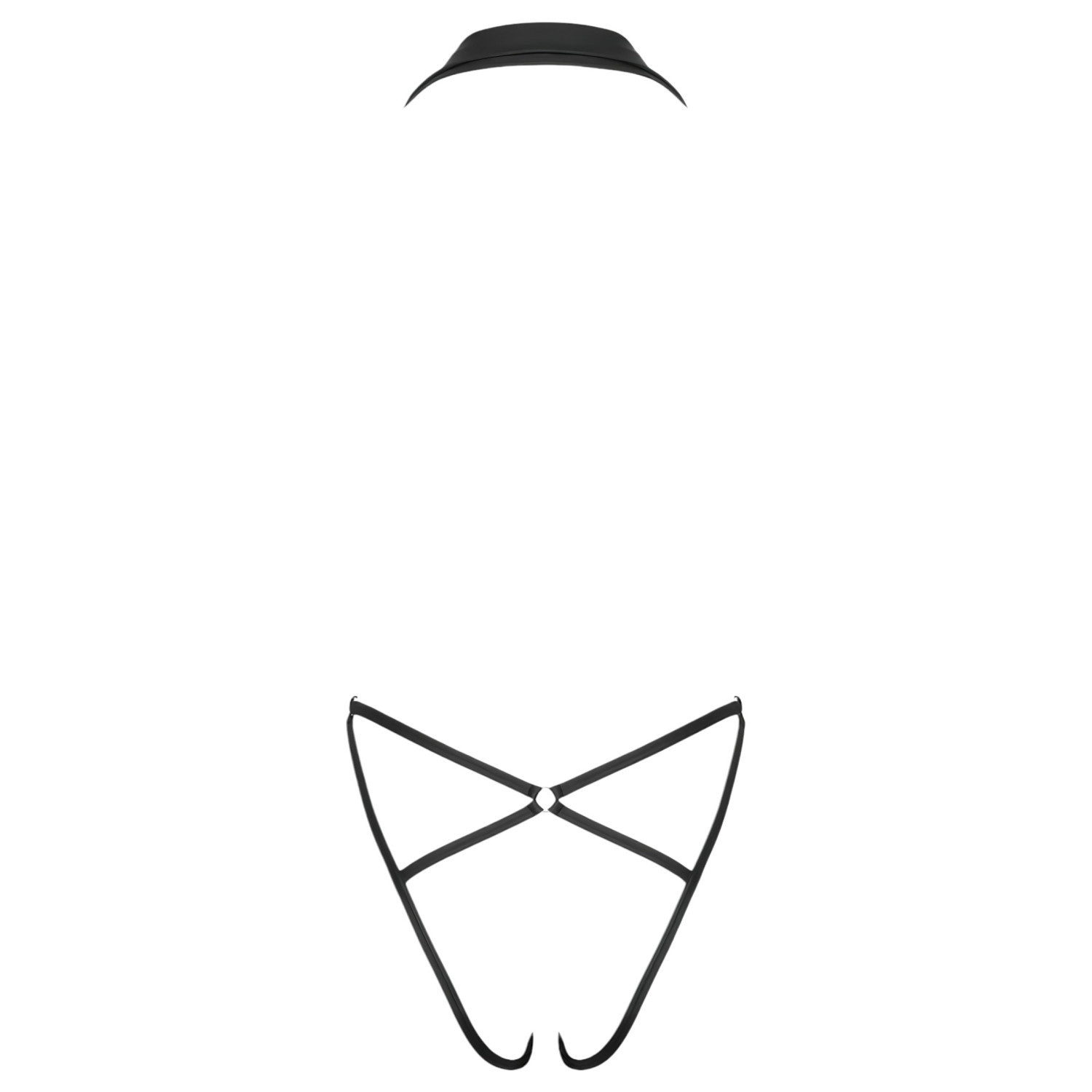 Skinnende sexy body med ekstra dyp utringning, med bare noen elastiske stropper bak, og elegant krage!