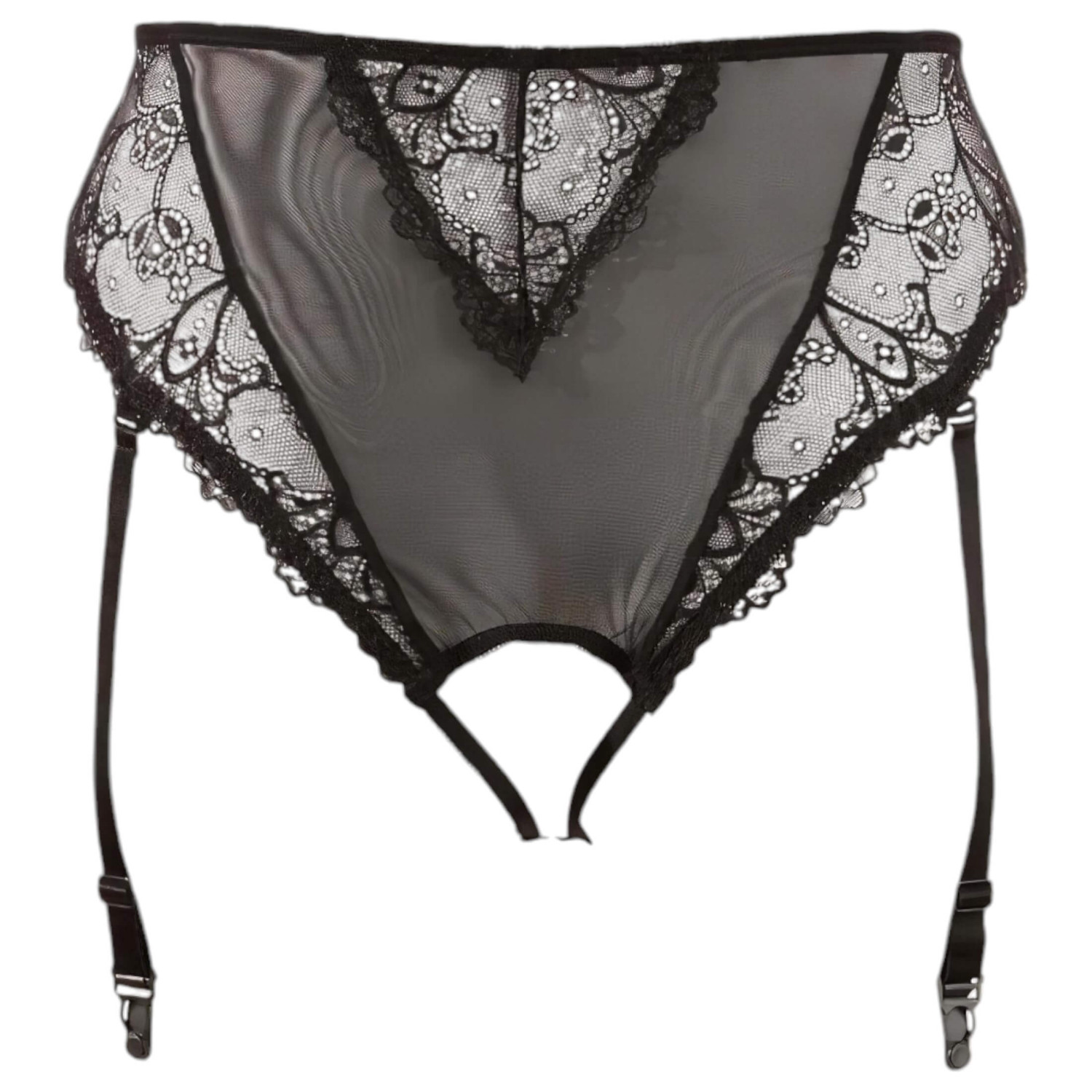 Cottelli Plus Size - sort med blonde & strømpeholder (svart) - XXXL