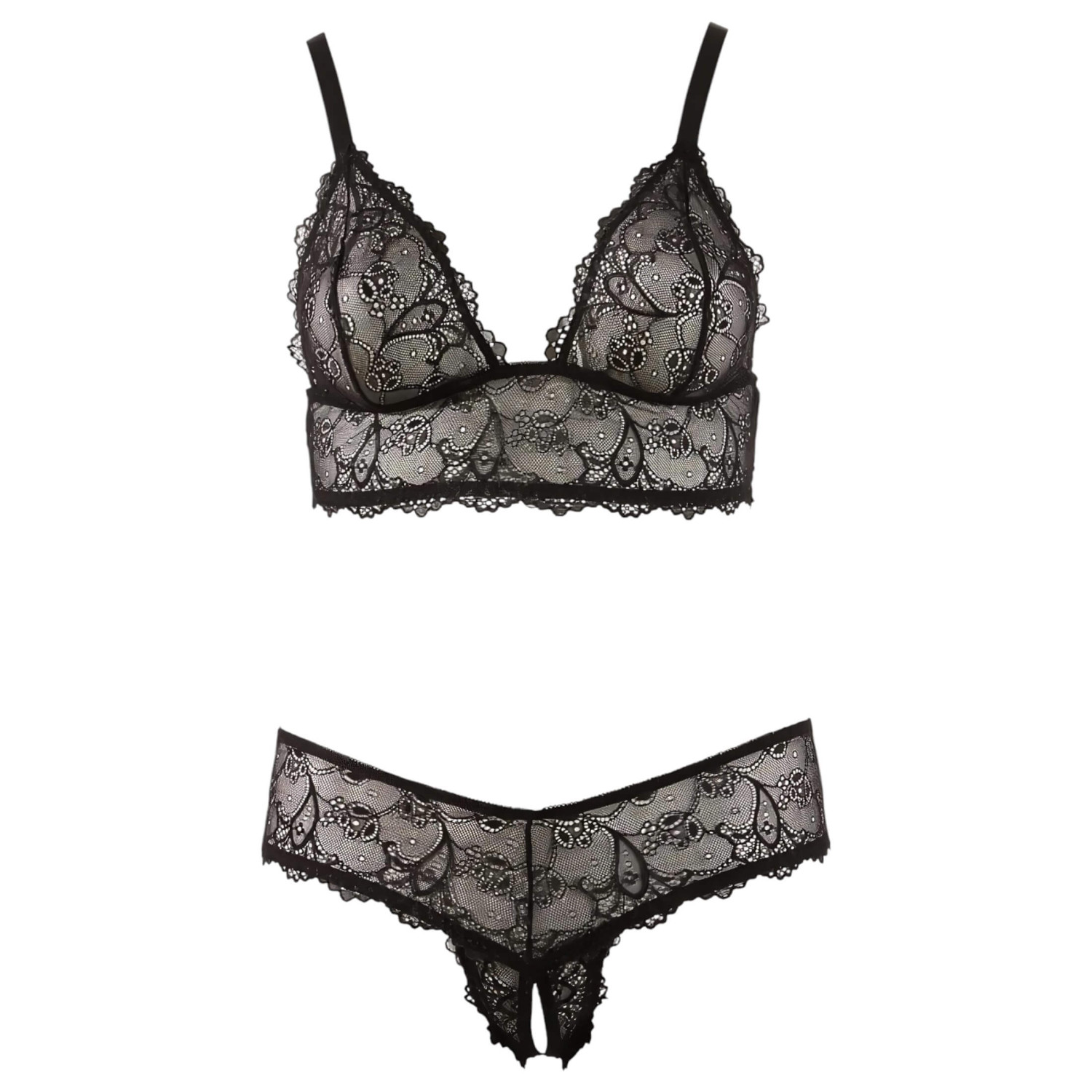 • Fristende design: Det sorte blonde-materialet utstråler eleganse, samtidig som hele settet gir et ekstremt sensuelt utseende.