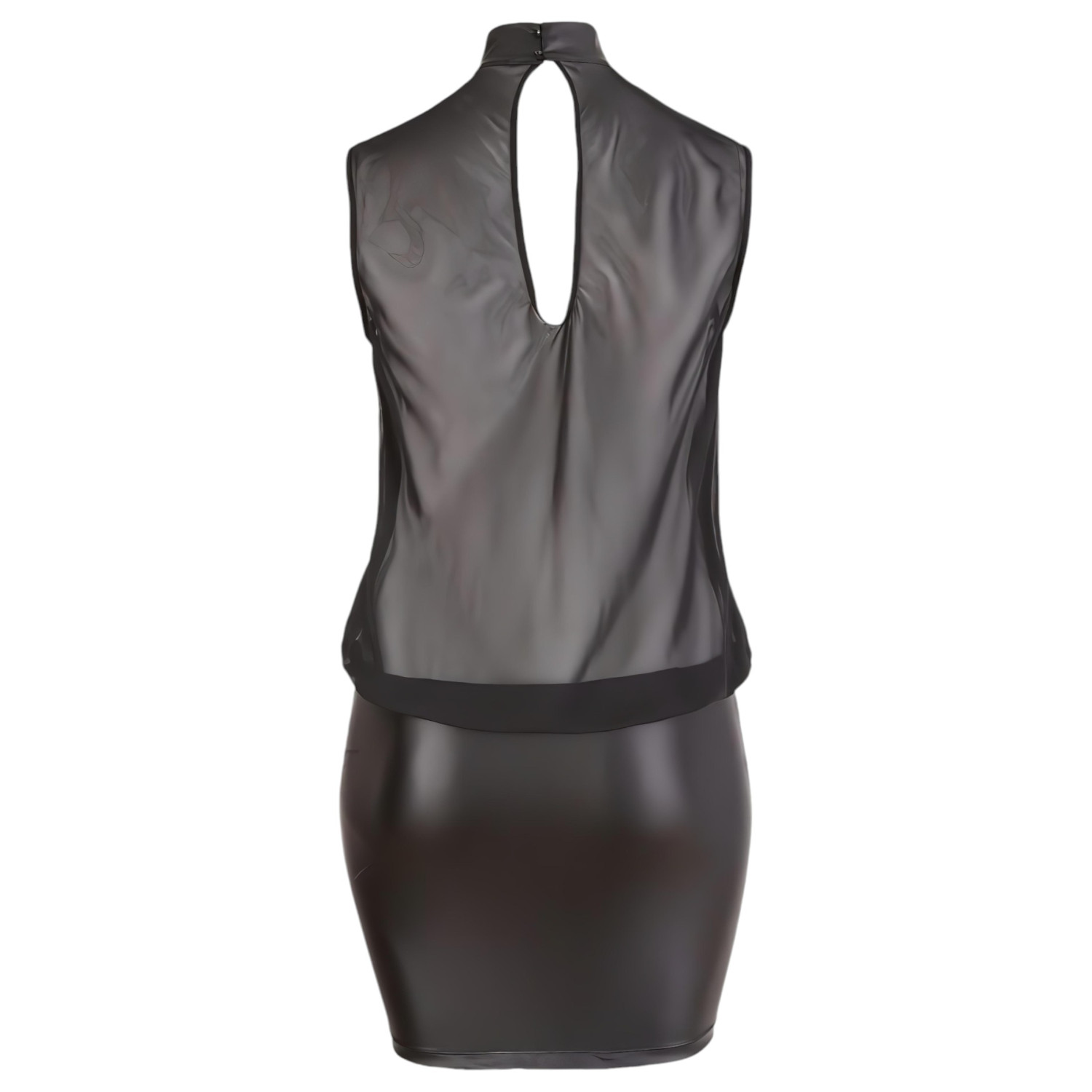 • 1 stykk sort minikjole med ståkrage og gjennomsiktig overdel
