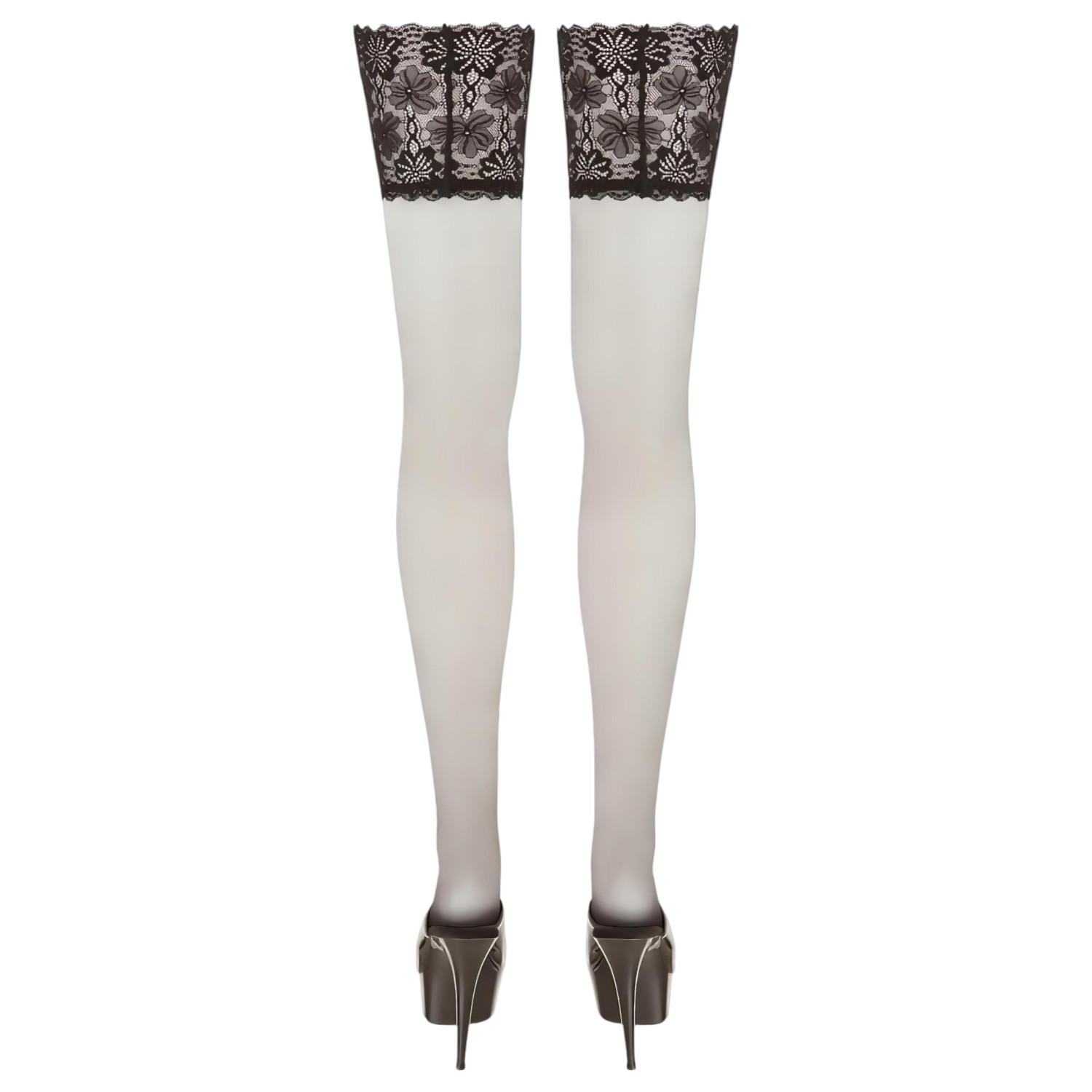 Cottelli Plus Size - Strømpe med bred blondekant (Svart) - 7