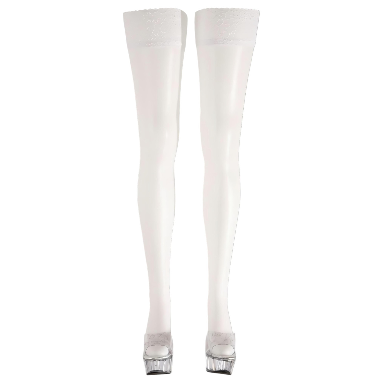 Cottelli - Satin stay-ups (hvit) - 3/M-L