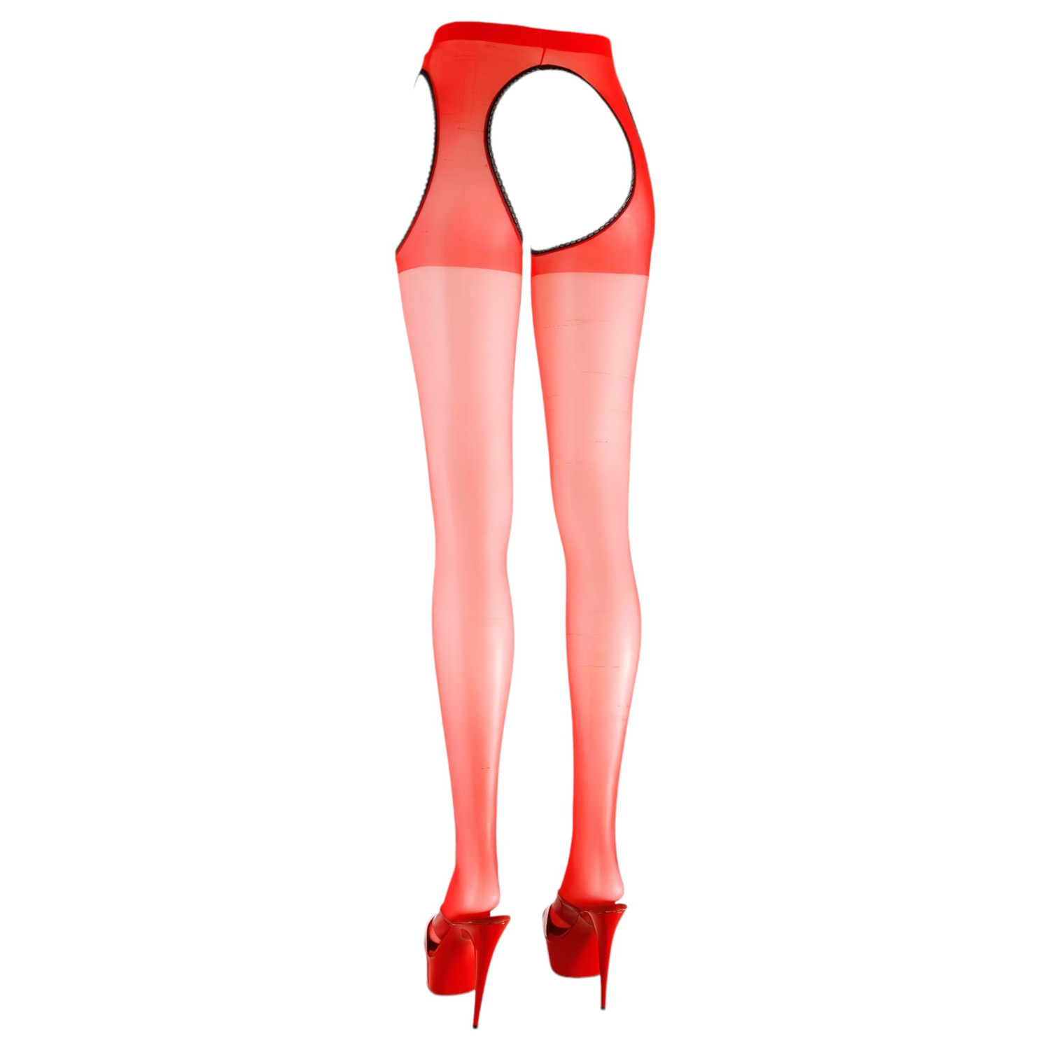 Disse fantastiske røde, åpne krok-stroppe-strømpene er det perfekte valget for enhver forførende stil.