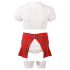 • Kort topp: Laget av elastisk, hvitt materiale, med knyting foran og ekstra dyp, rund utrigning som fremhever dine kurver.