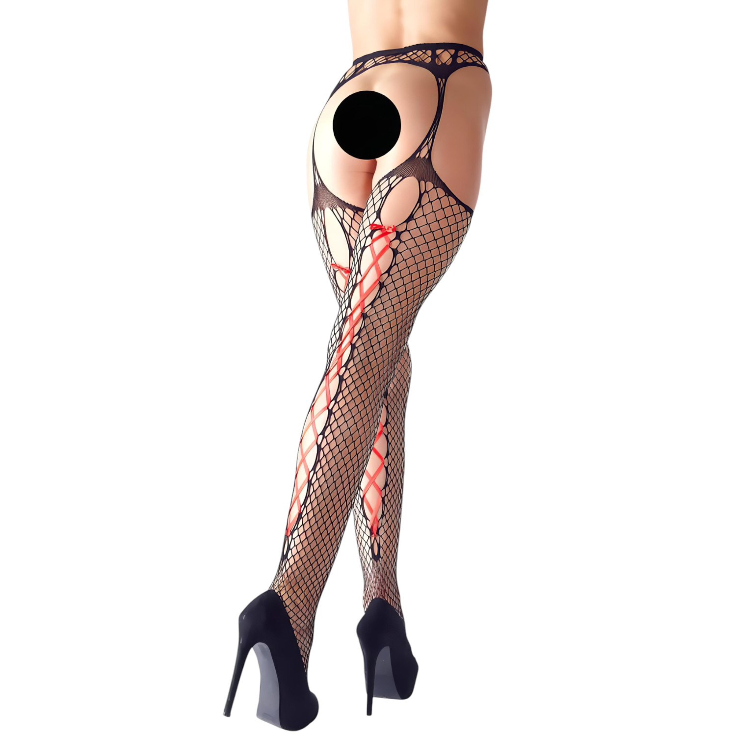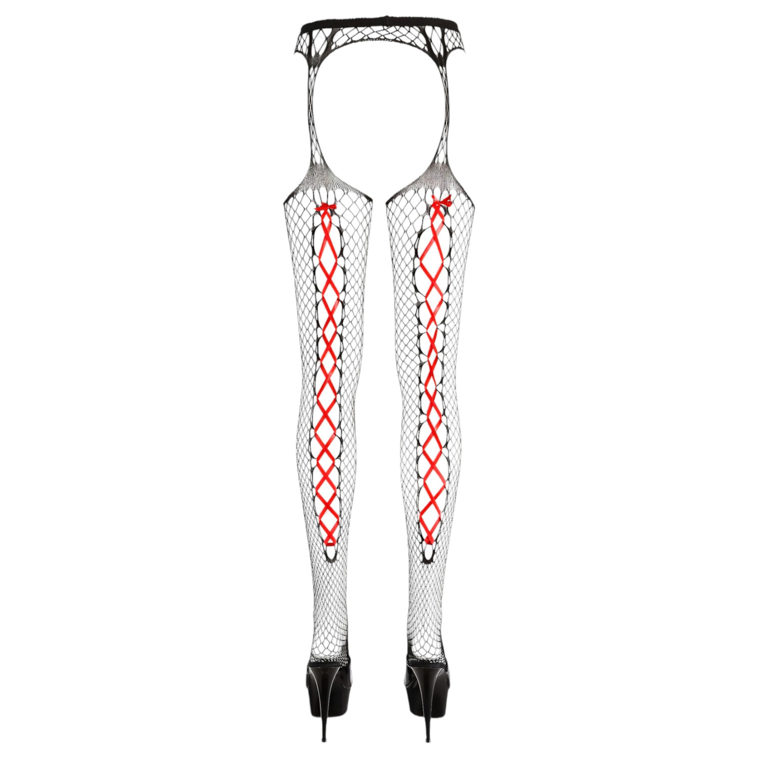 Anmeldelser Cottelli - Sorte nettingstrømper med rød snøring