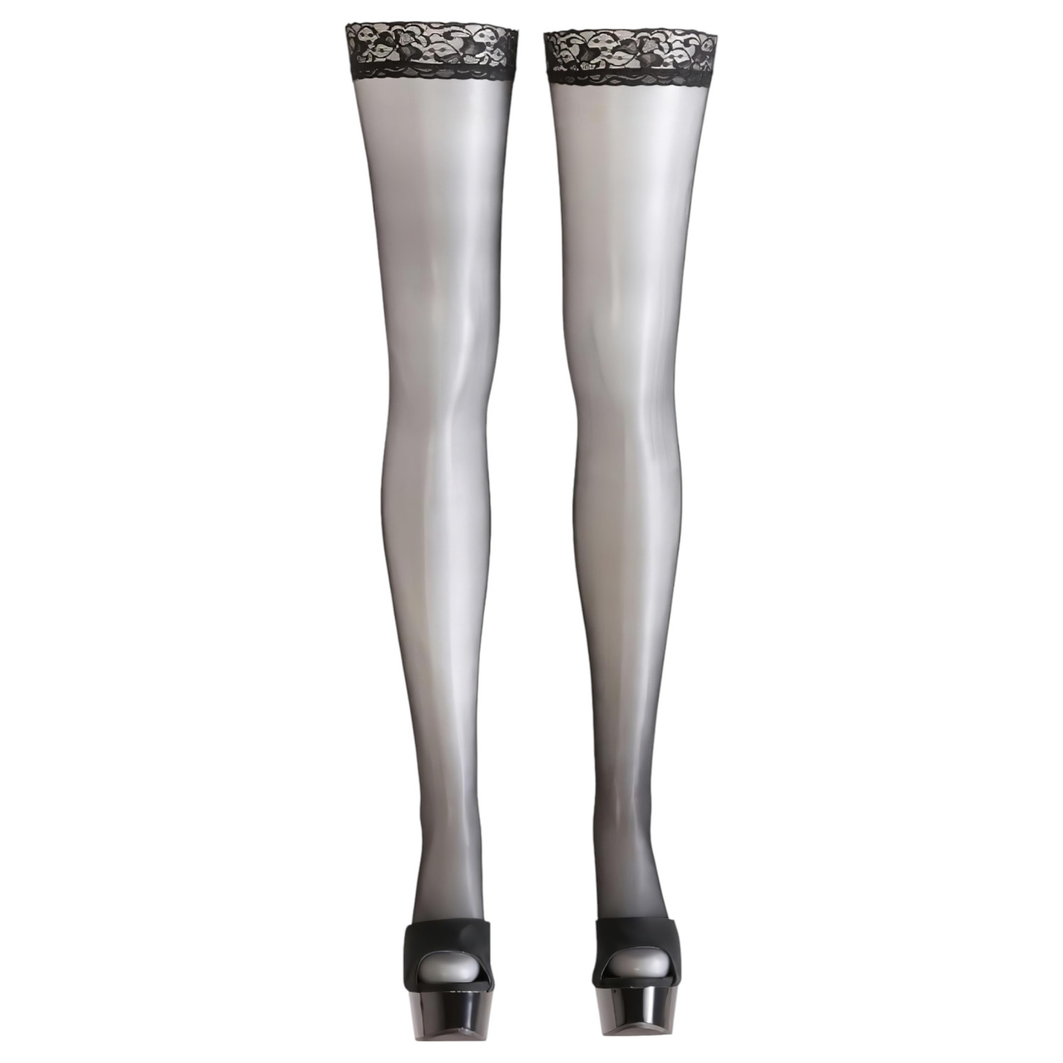 Cottelli - Sorte stay-ups med stripe - 5/XL