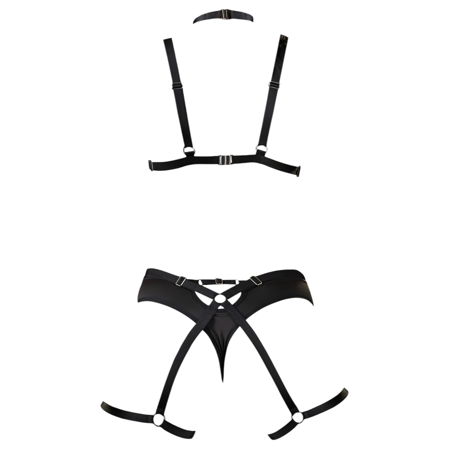 Cottelli - Eksklusivt sort kroppsharness-trio (S-L)