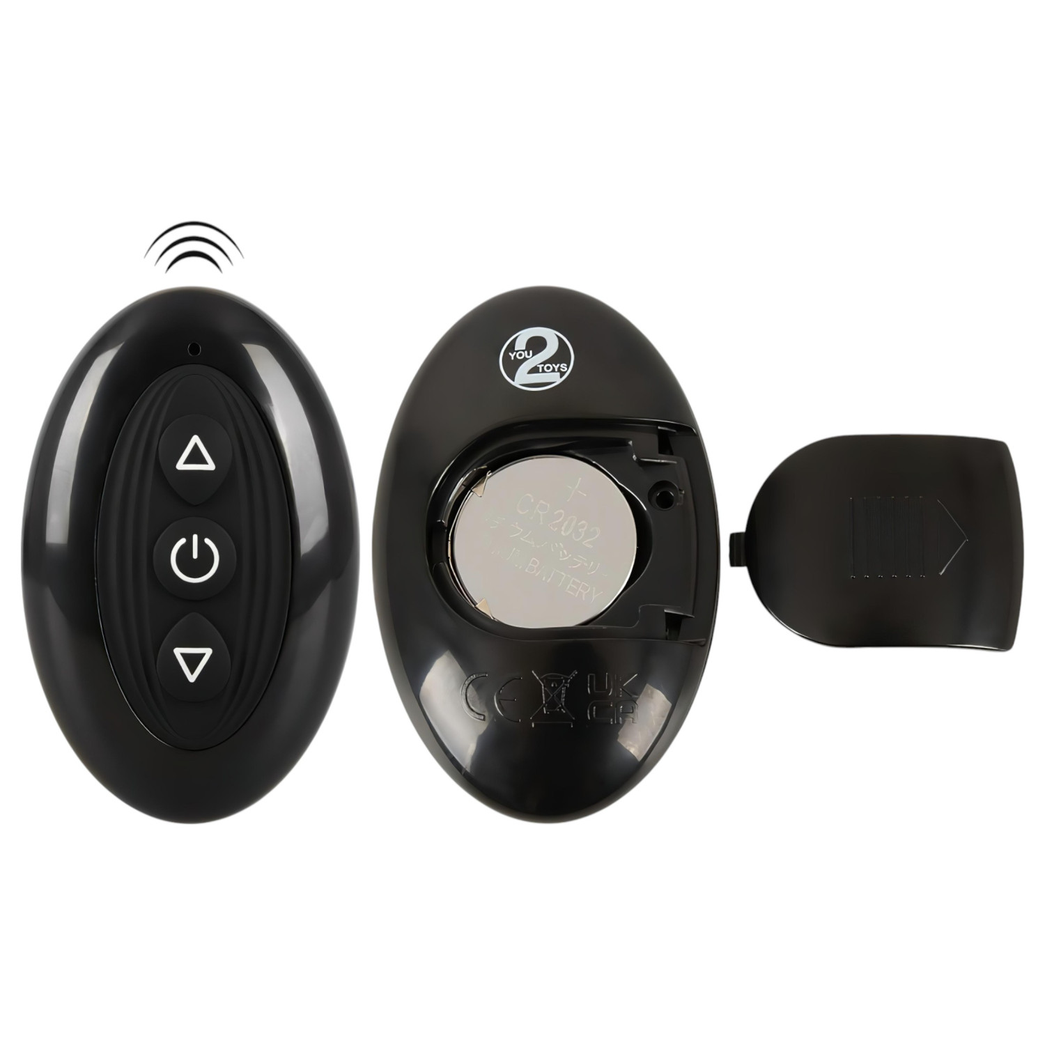 Ved å aktivere funksjonene kan enheten også styres med fjernkontrollen. Trykk på strømbryteren for å starte eller pause vibrasjonen. Bruk pilene for å bla gjennom rytmene.