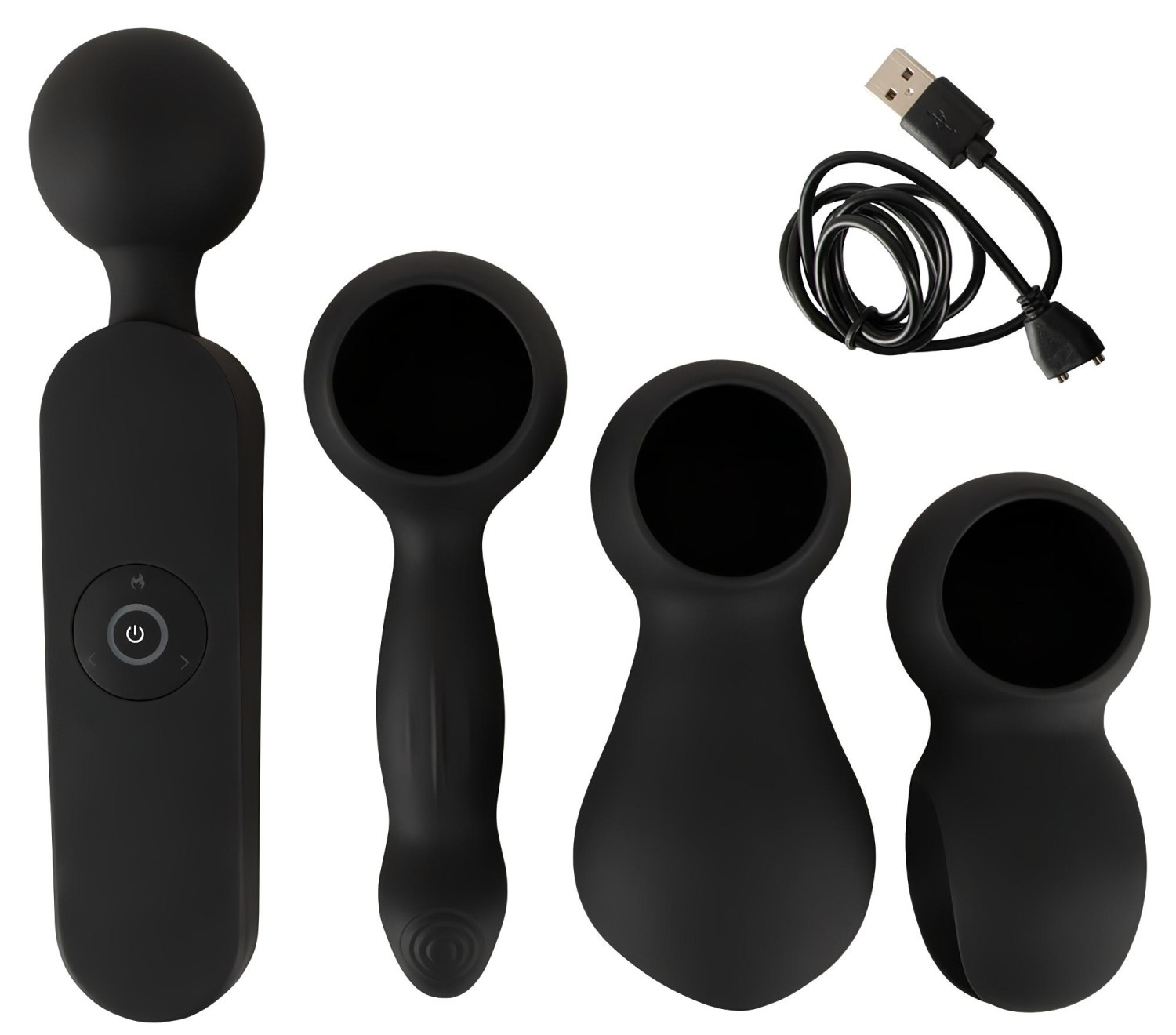 Massasjevibrator med kraftig motor og tre utskiftbare hetter.