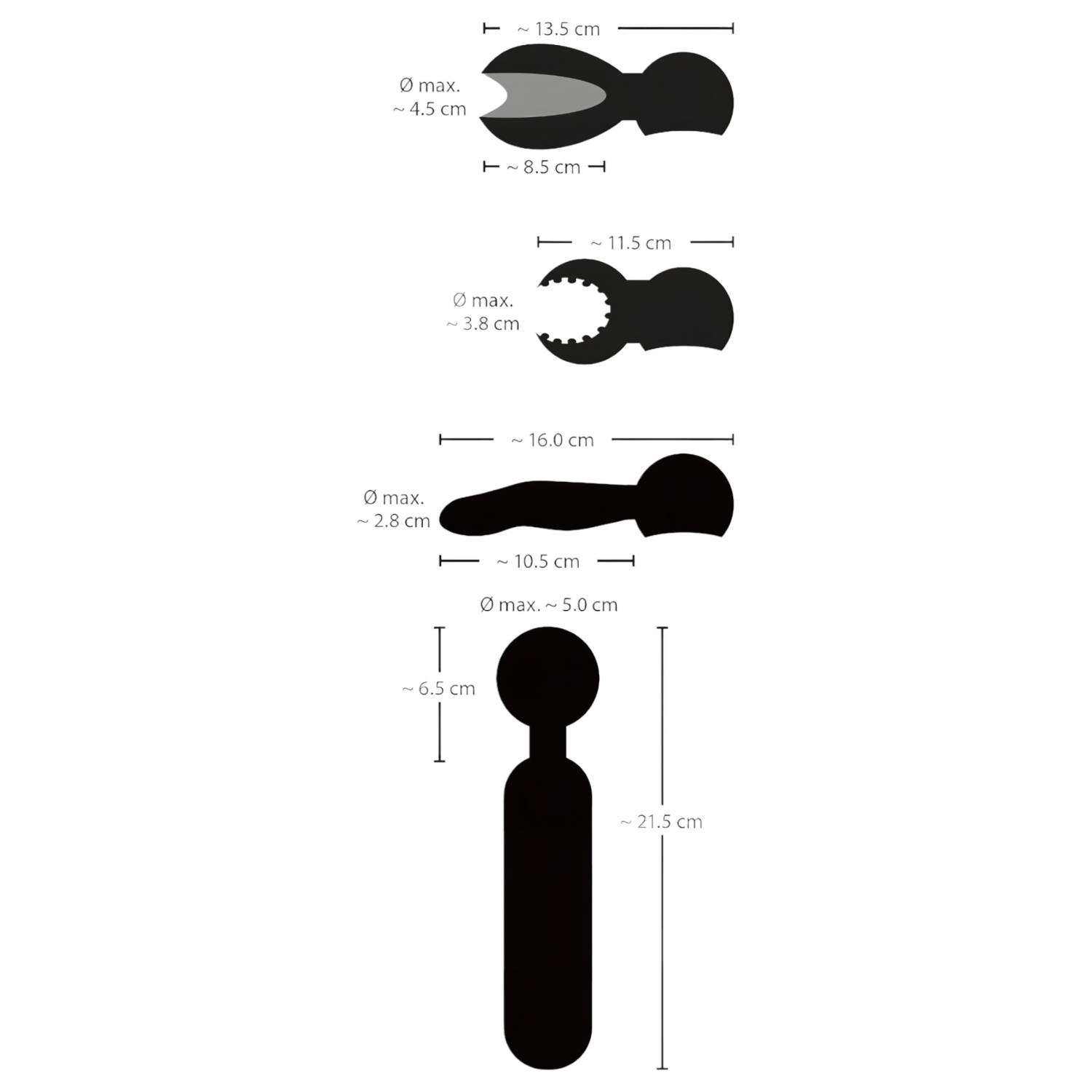 • Lengde på hetter: 16 cm, 11,5 cm og 13,5 cm