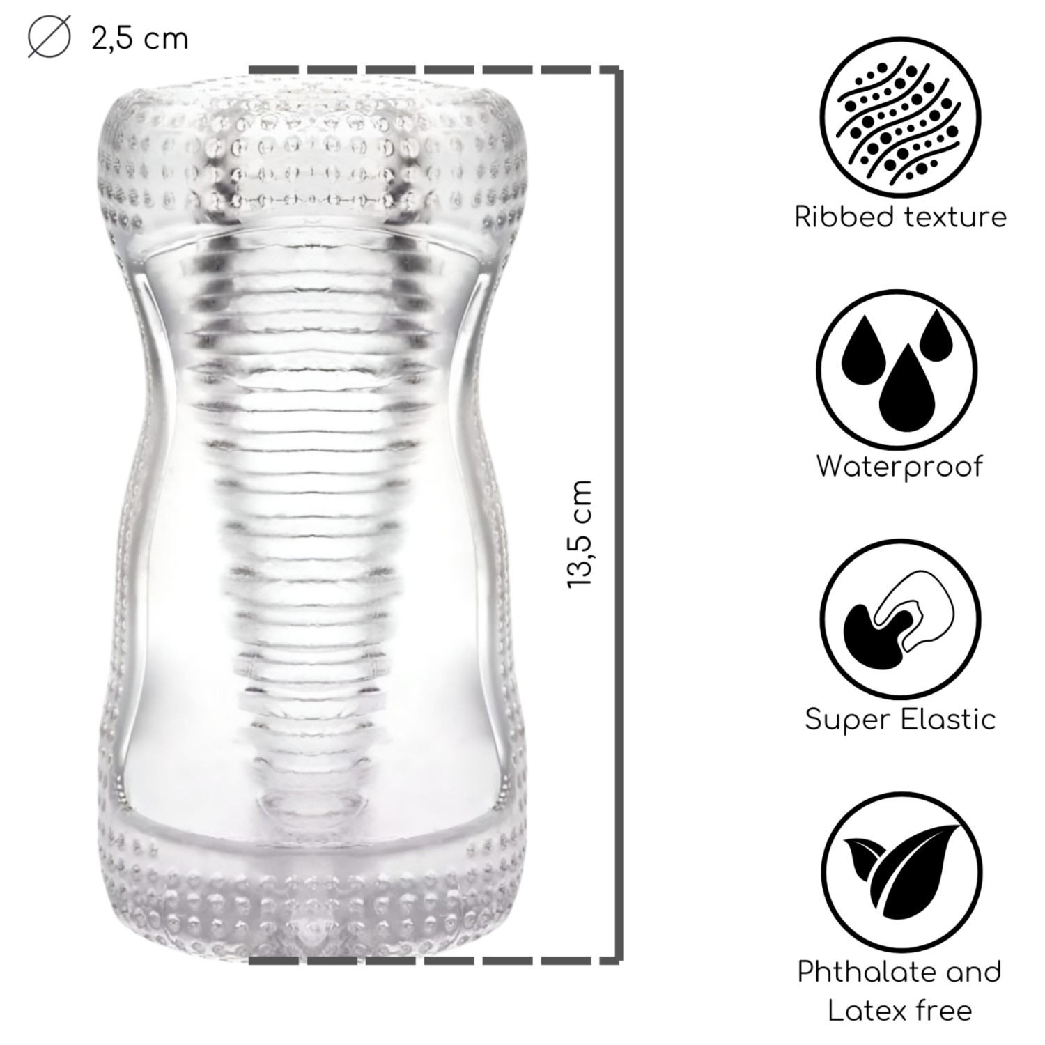• Ribbet indre overflate - stimulerer skaftet ekstremt når det glir inn og ut