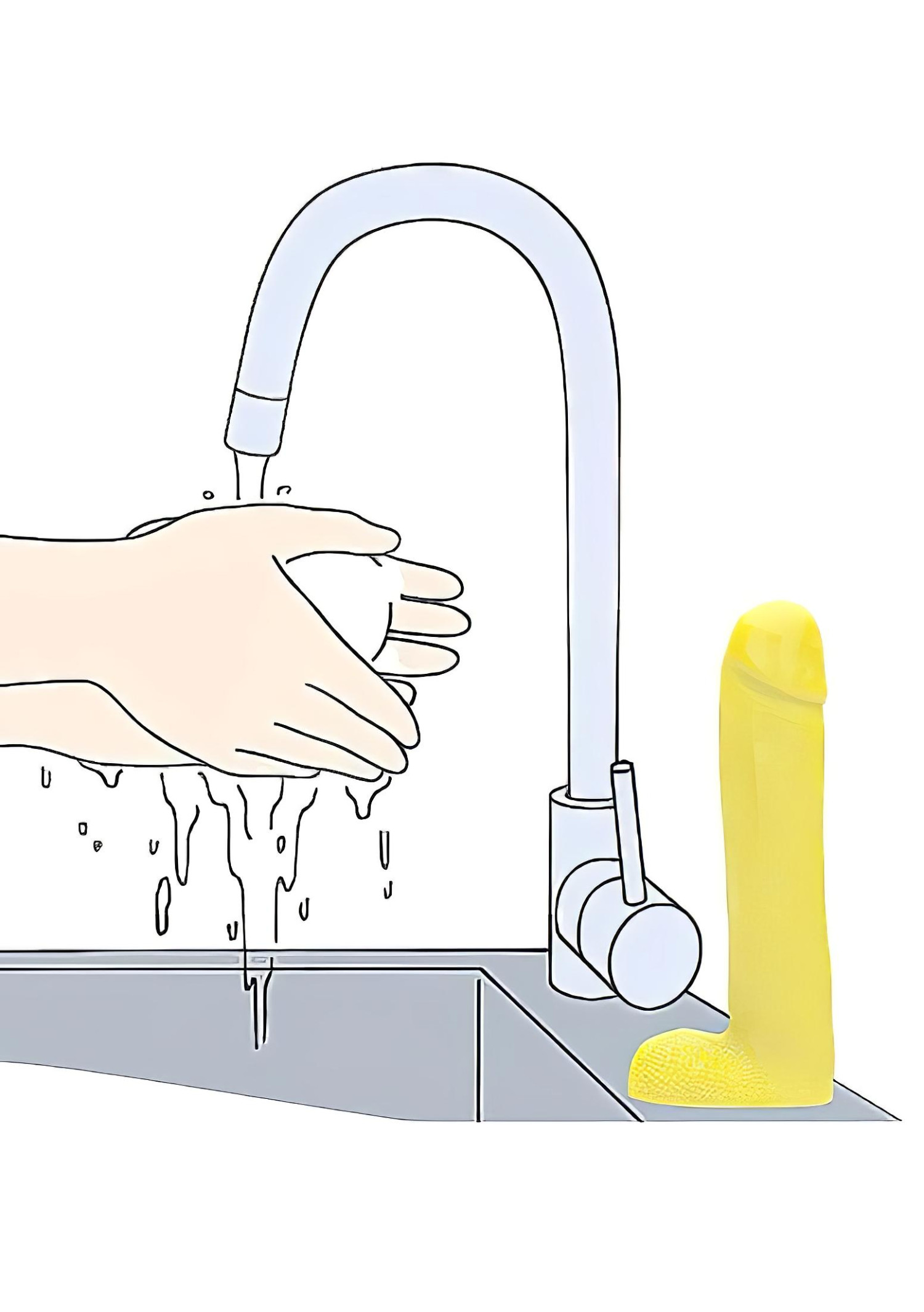 Fukt hendene, ta deretter godt tak i den penisformede såpen, beveg håndflaten opp og ned over den, legg den deretter på området som skal rengjøres, gni inn og skyll grundig!