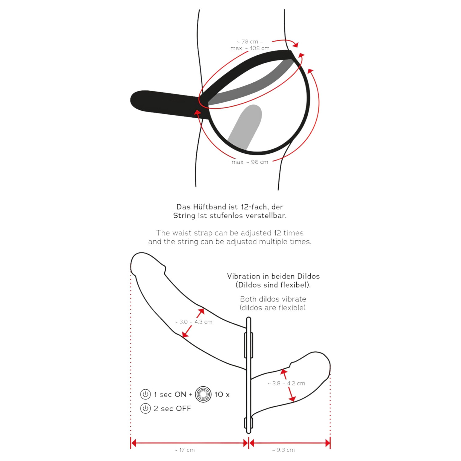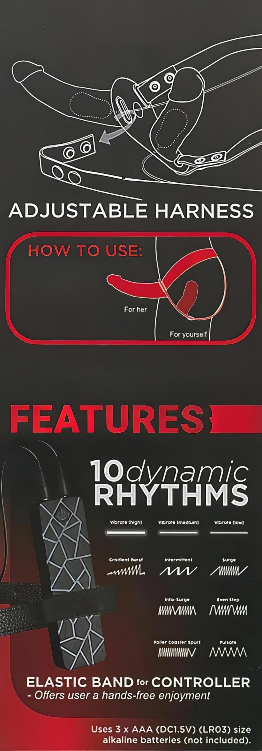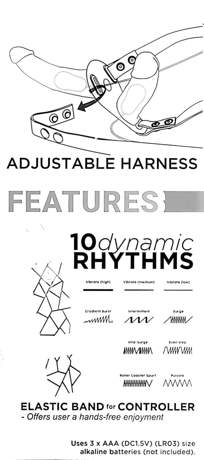 • Materialer: ABS (kontroll), Lær (stropper), Silikon (vibratorer) – i samsvar med EU-forskrifter, ftalatfri